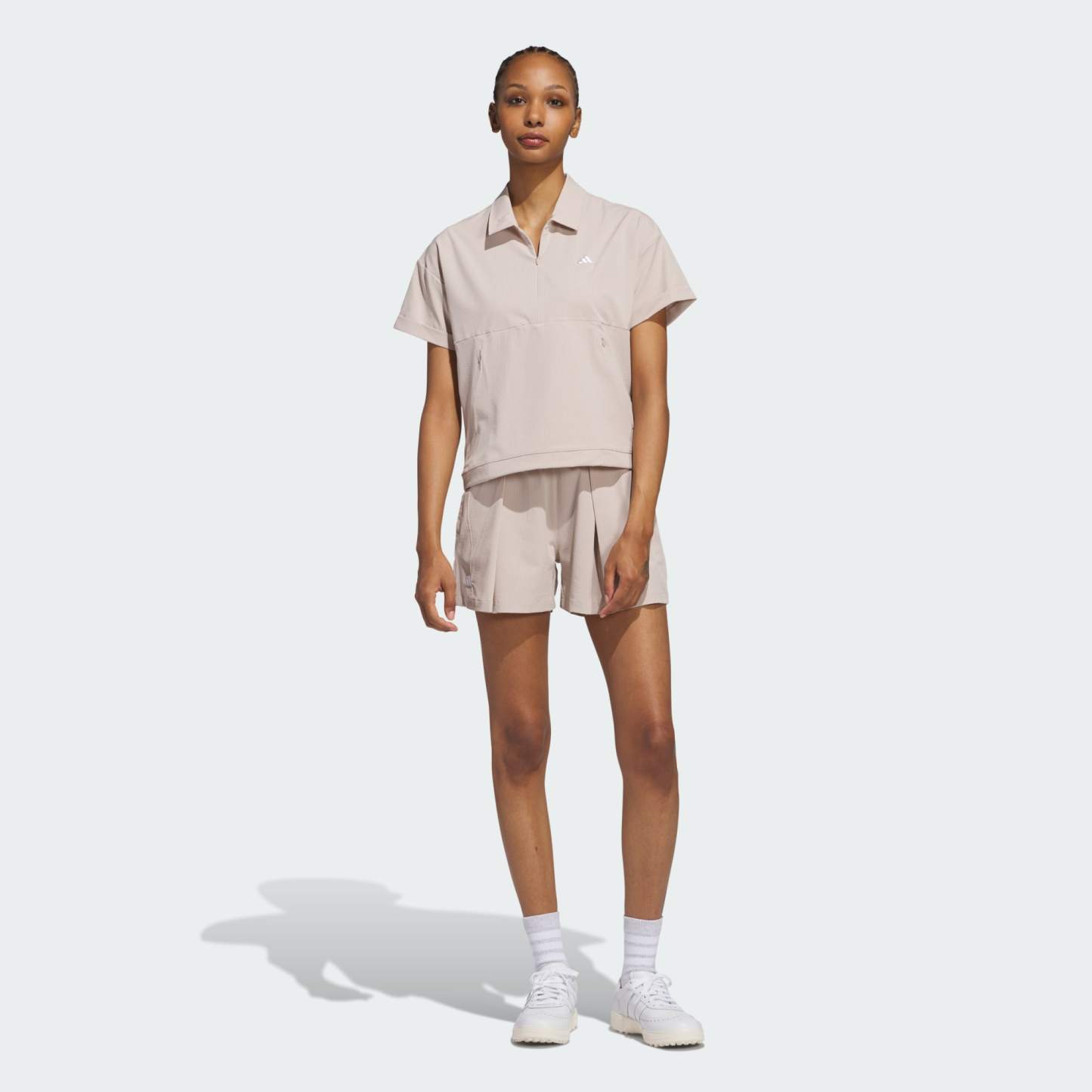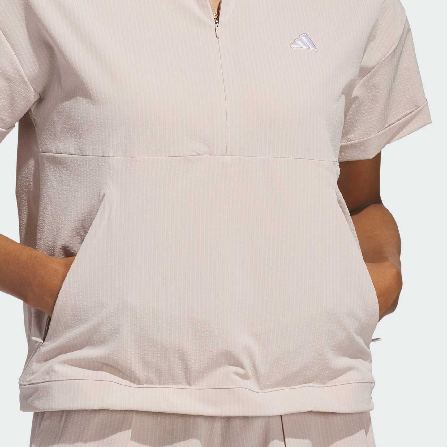 Transitional weather calls for a lightweight layer, and this one from adidas has you covered. The loose, stretchy feel supports your game, and short sleeves won't get in the way of your swing. A water-repellent finish lets you play through occasional showers without missing a beat.