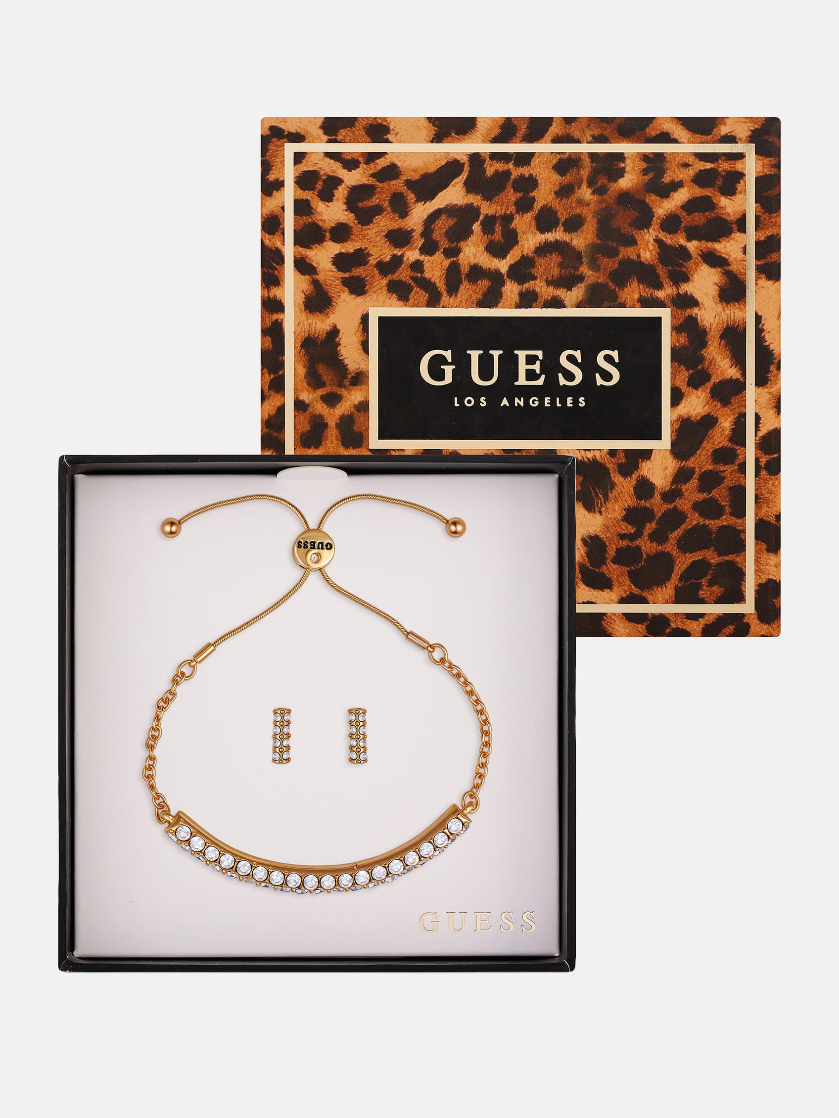 Gold-Tone Rhinestone Stud Earrings and Bracelet Box Set