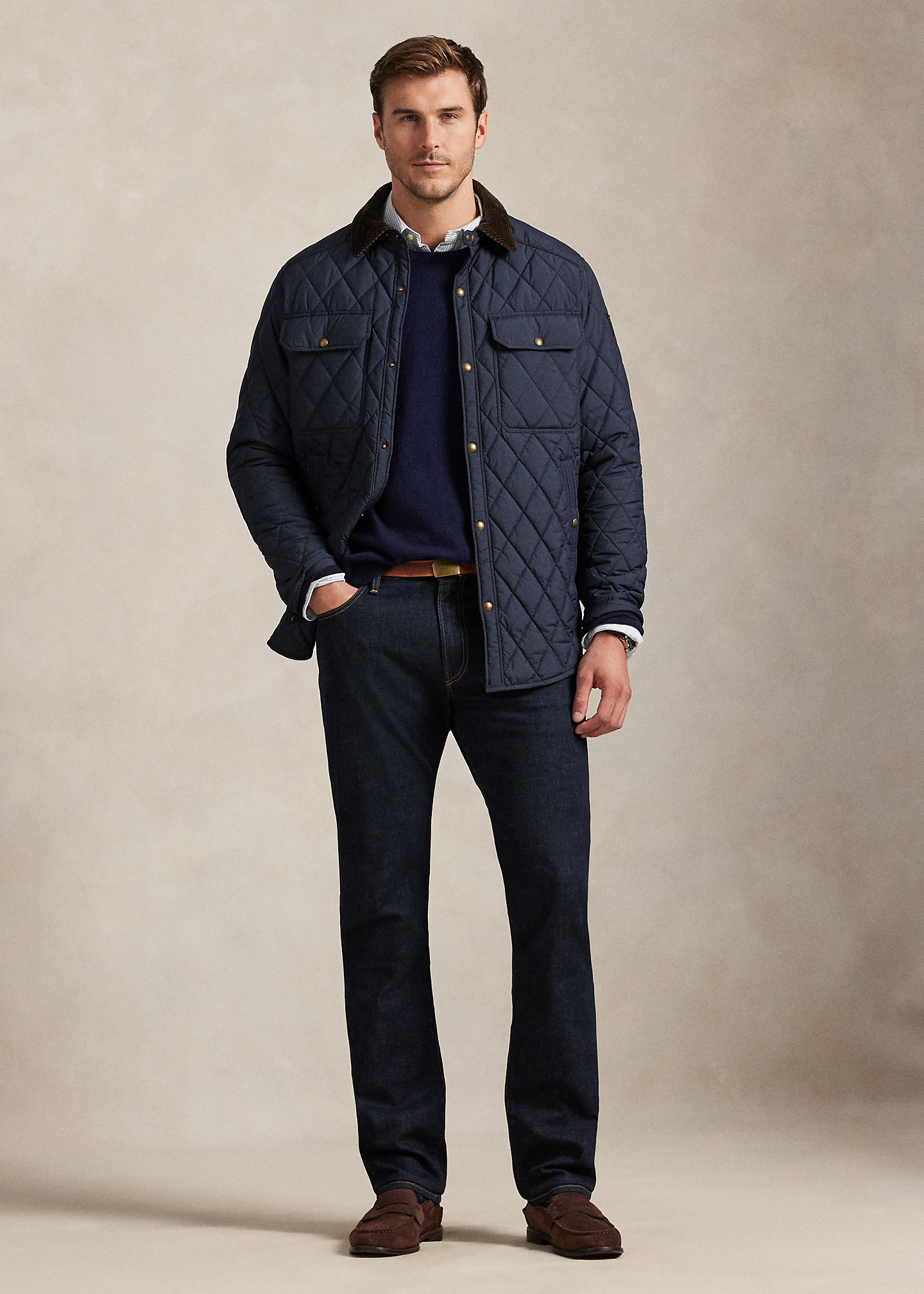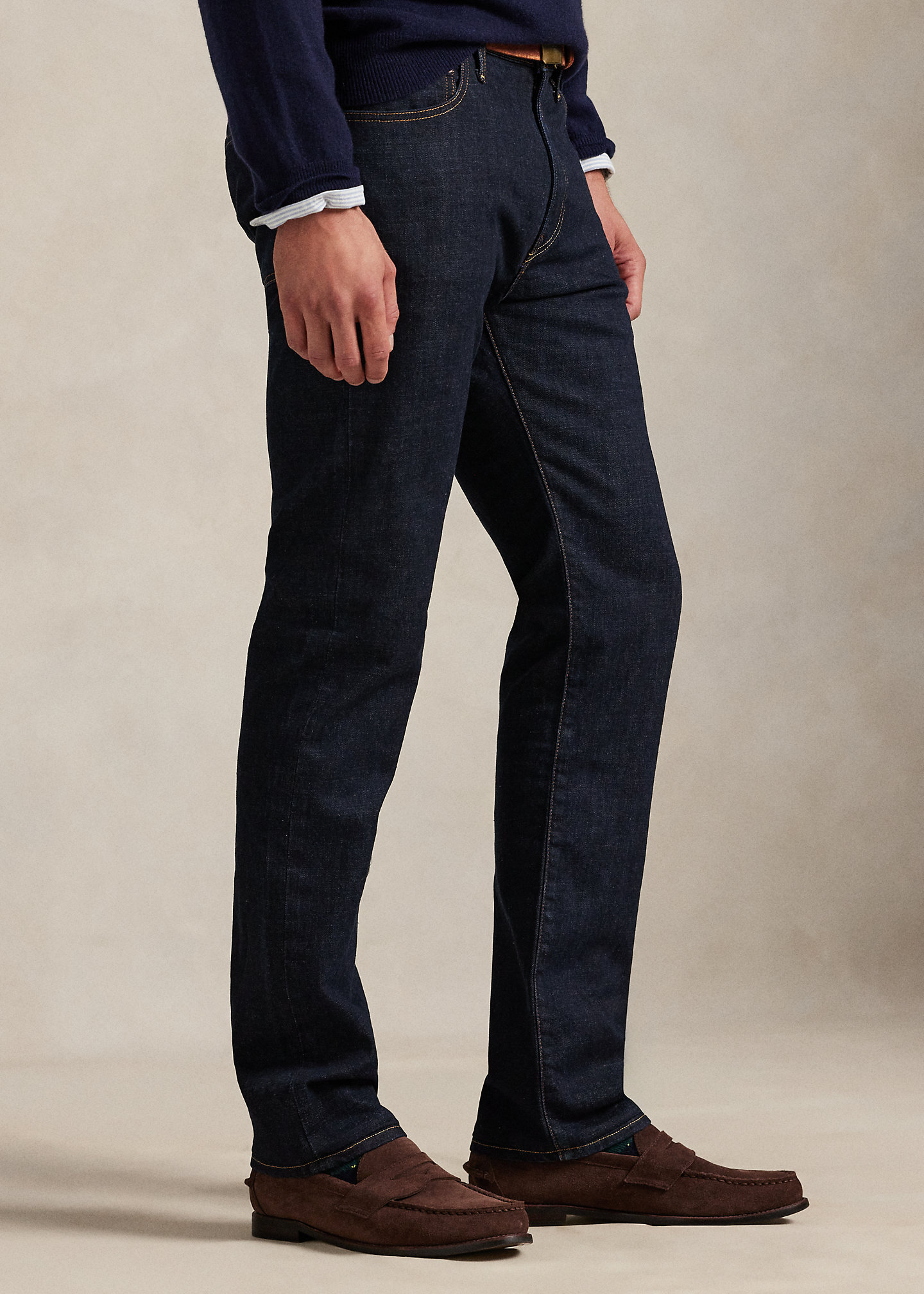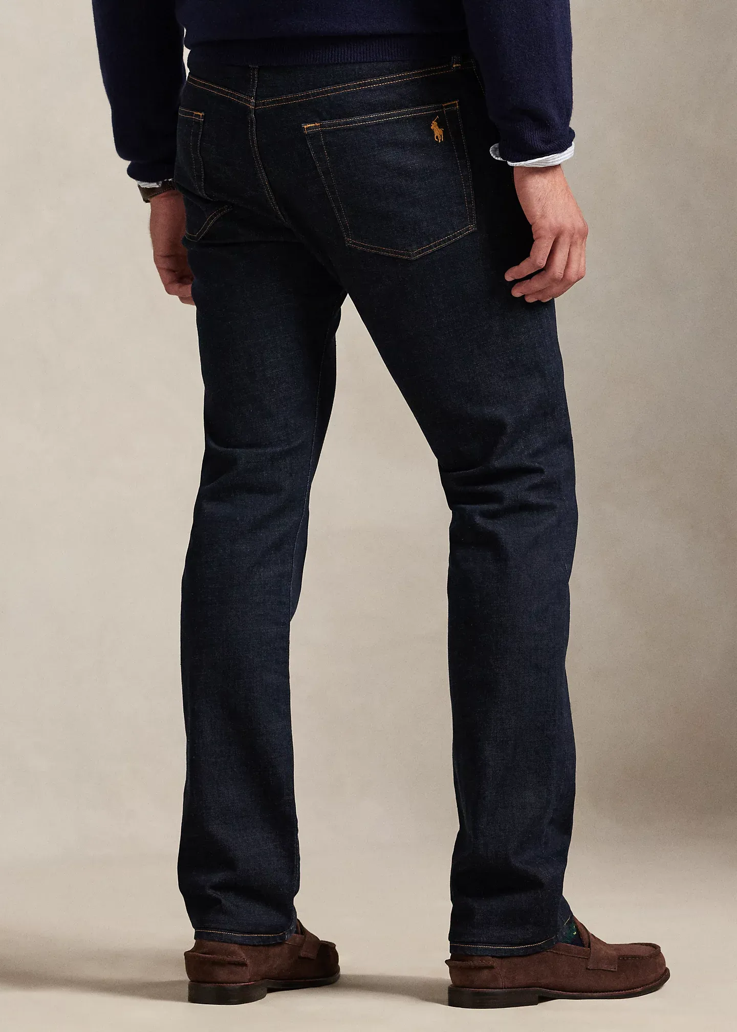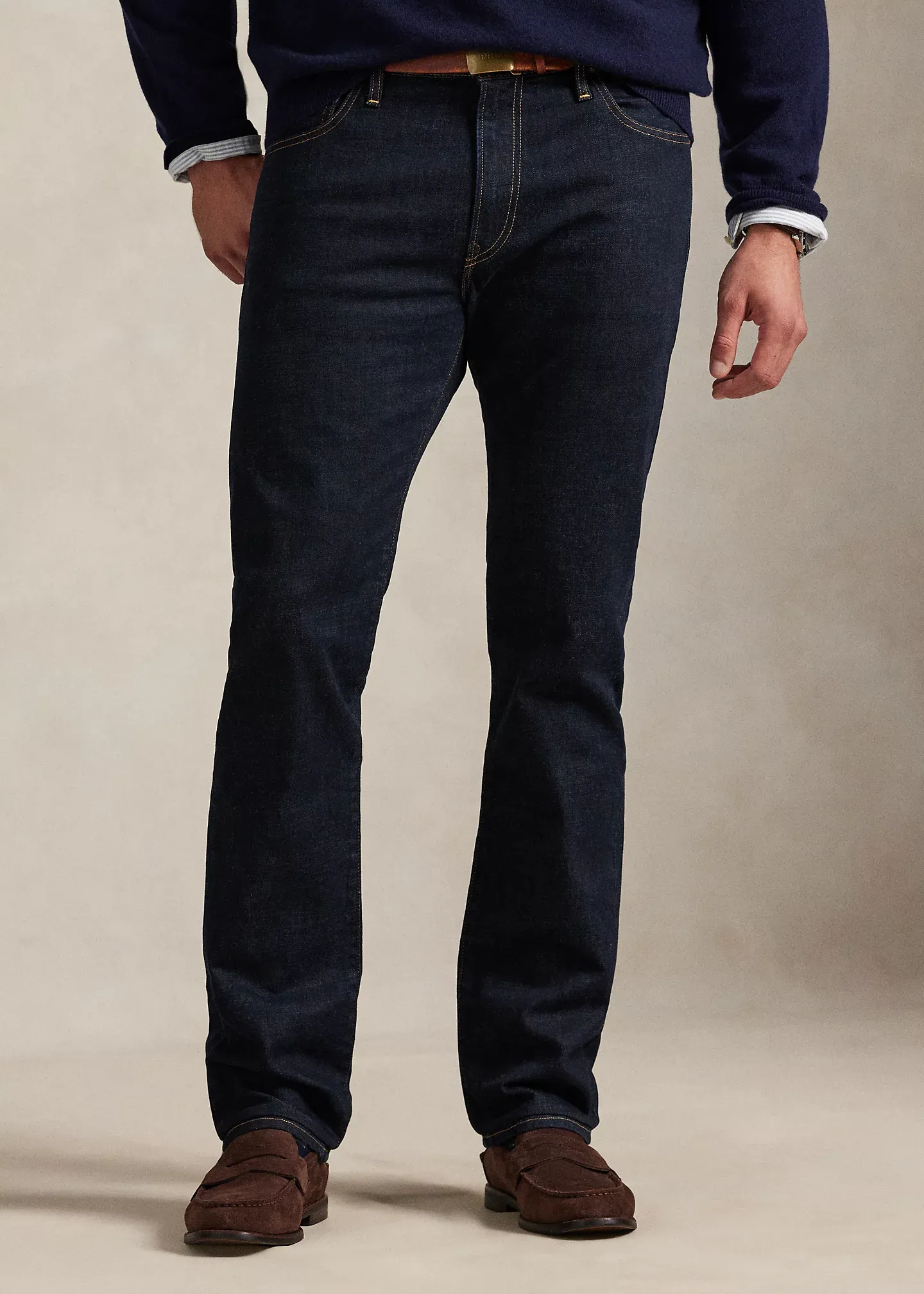 - Five-pocket styling with signature metal rivets. Leather “Polo Ralph Lauren” patch at the back right waist.