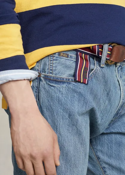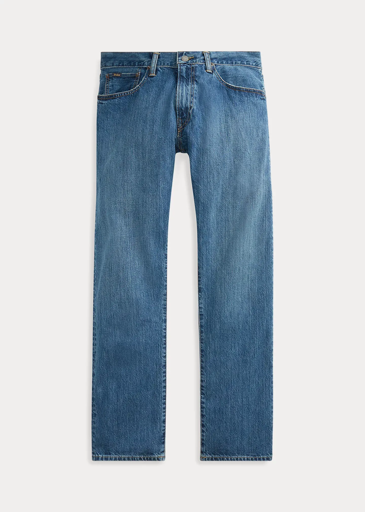 - Five-pocket styling with signature metal rivets. “Polo” label at the coin pocket.