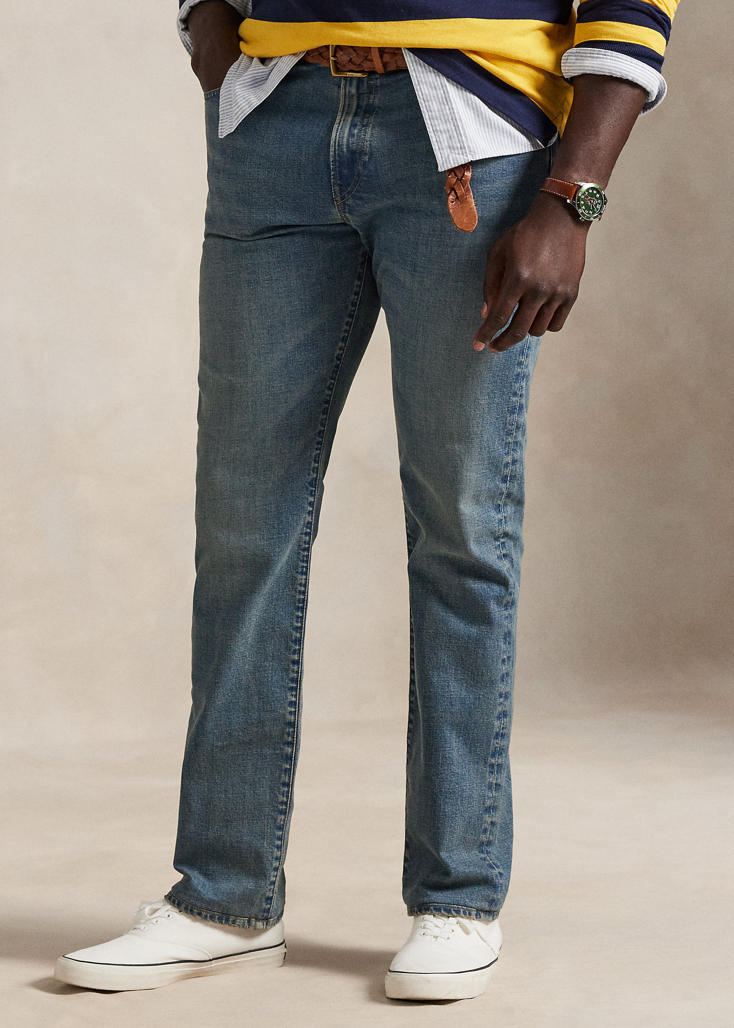 - The Hampton Relaxed Straight: Our most classic-fitting jeans sit slightly below the waist with an easy, relaxed fit through the seat and the thigh and a full straight leg.