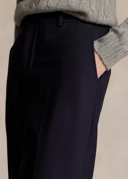 - Belt loops. Zip fly with a hook-and-bar closure at the center front. Interior curtain waistband.