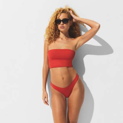 One top, endless swim looks. This versatile pullover bandeau top is designed with a convertible length that can be folded to wear as a bandeau, cropped tube top, or full-length tube top. Features a built-in shelf bra for support and removable, adjustable straps. Fits true to size.