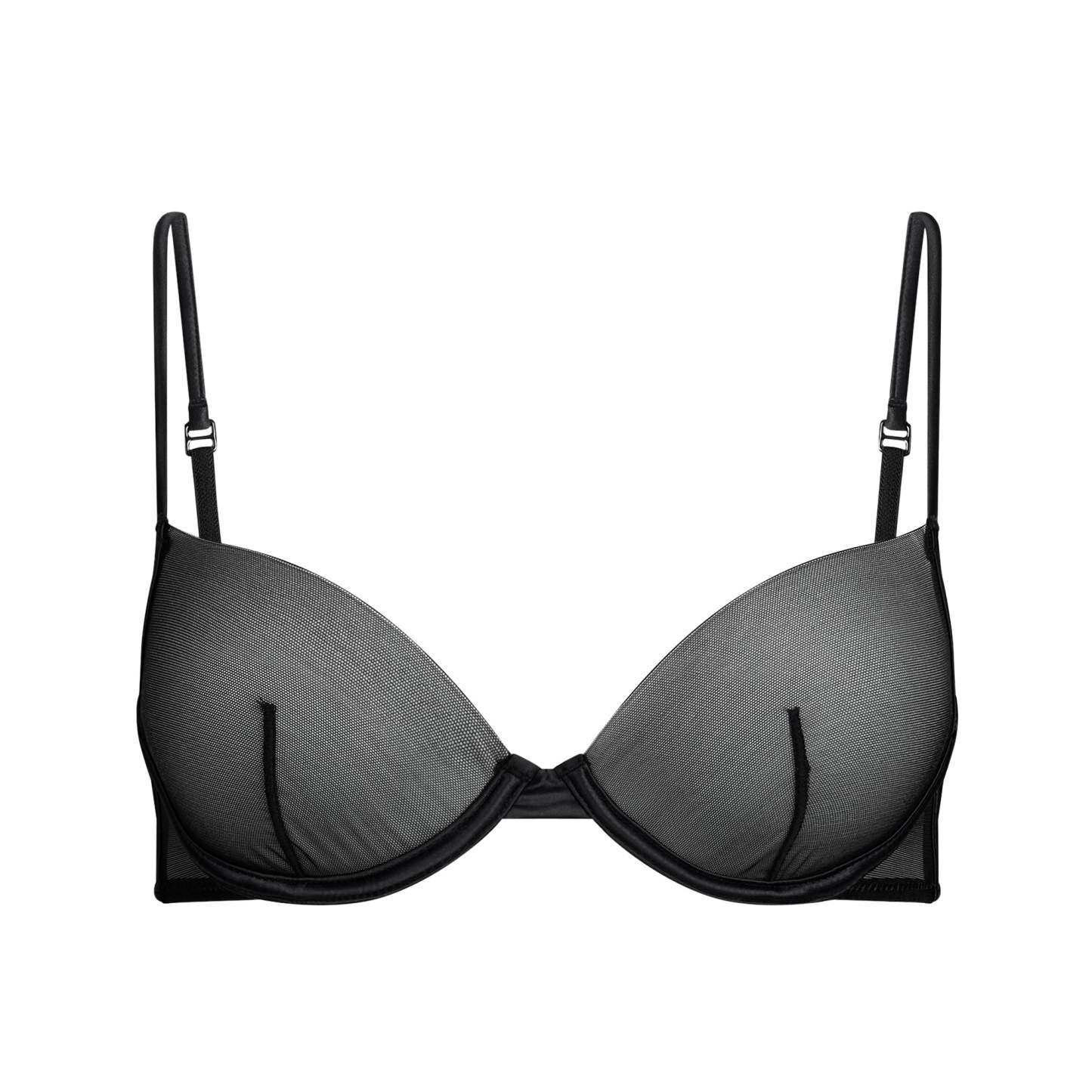 Designed in our new fine sheer mesh, this plunge bra brings an elevated, seamless finish to your look with woven shine finishes on the underband and straps. Features unlined cups, adjustable straps, and a supportive underwire. Complete with a hook and eye closure and fits true to size.