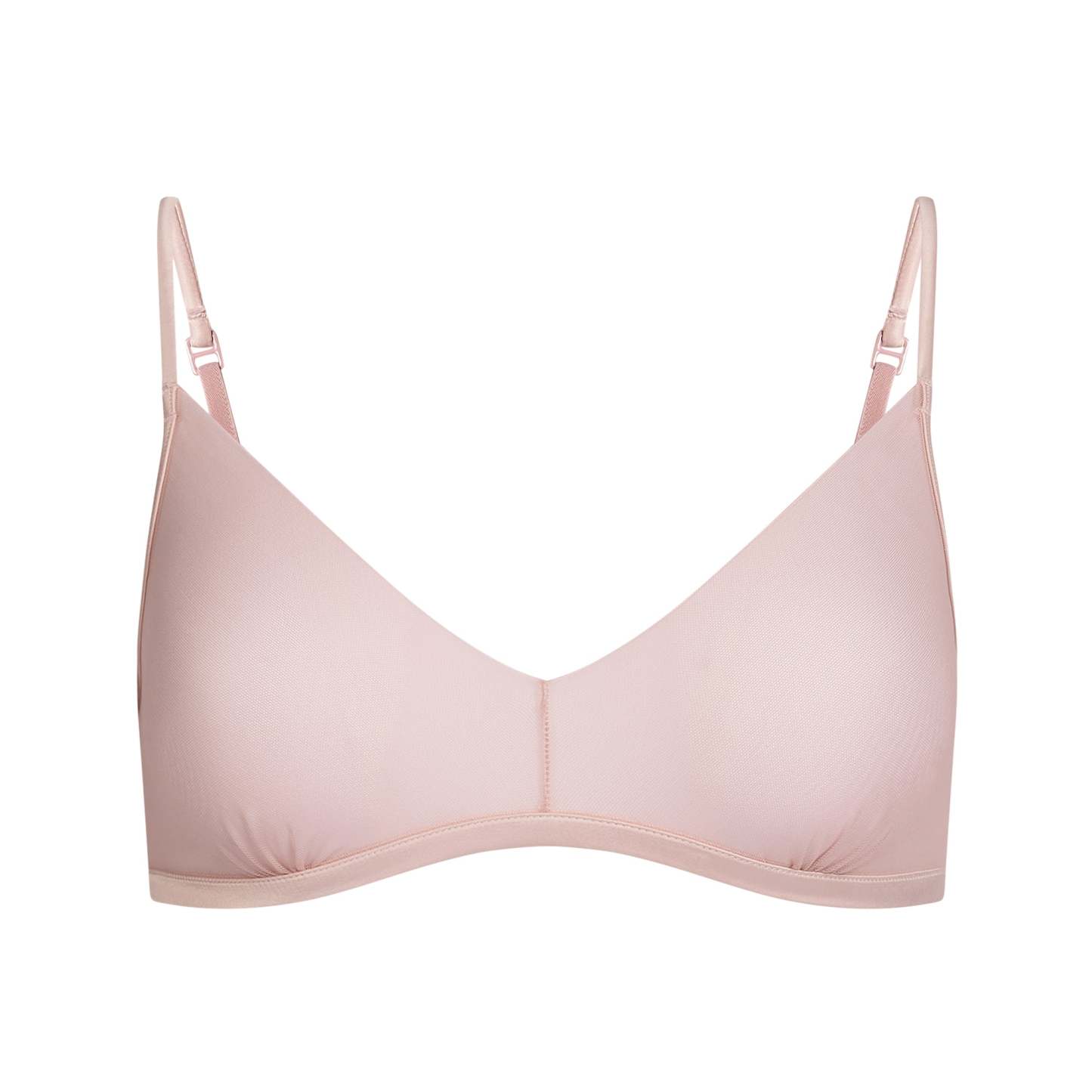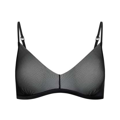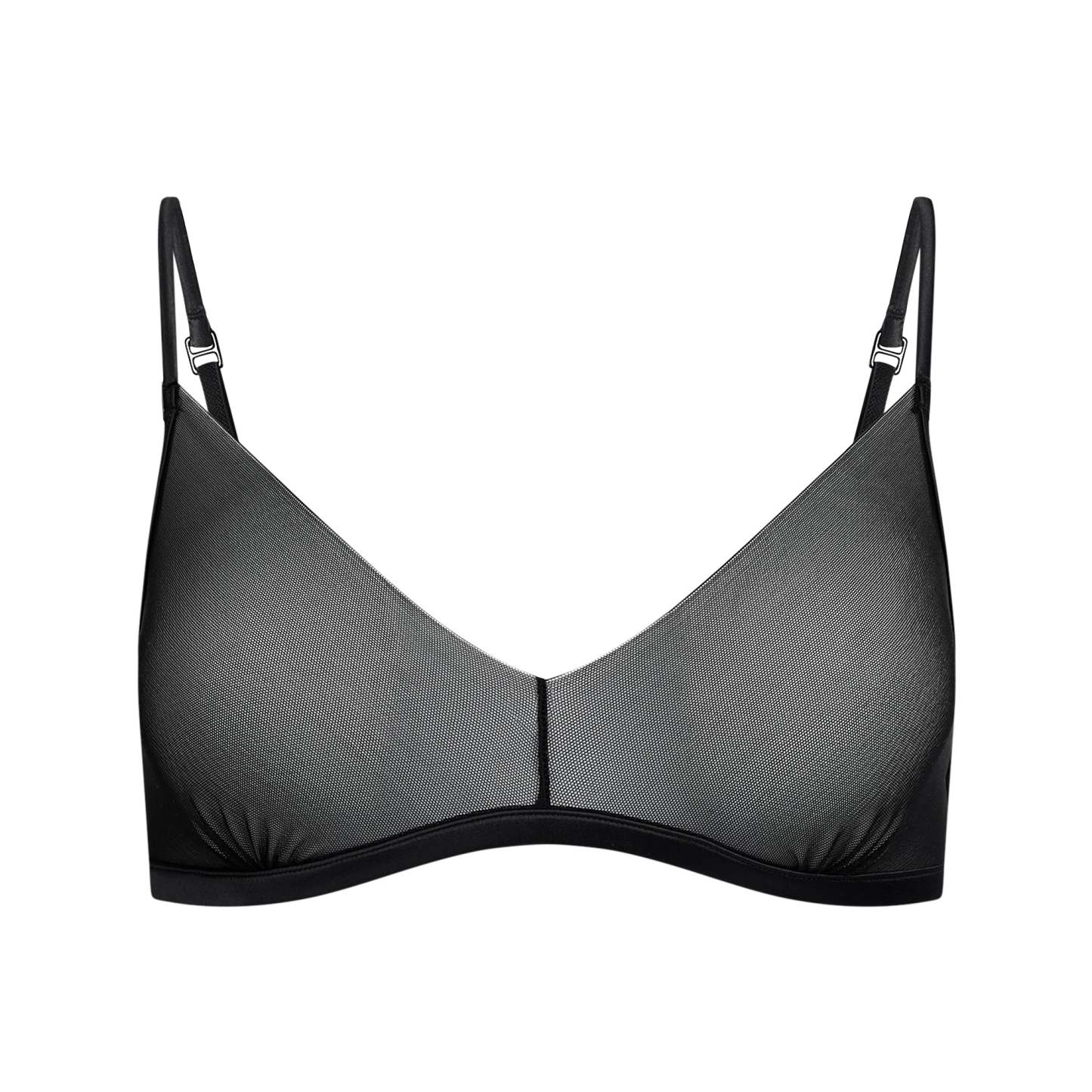 This lightweight triangle pullover bralette is made with our new fine sheer mesh for an invisible, seamless look under clothing. Features adjustable straps and an elastic underband for support. Designed with woven shine finishes on the underband and straps for an elevated look. Fits true to size.