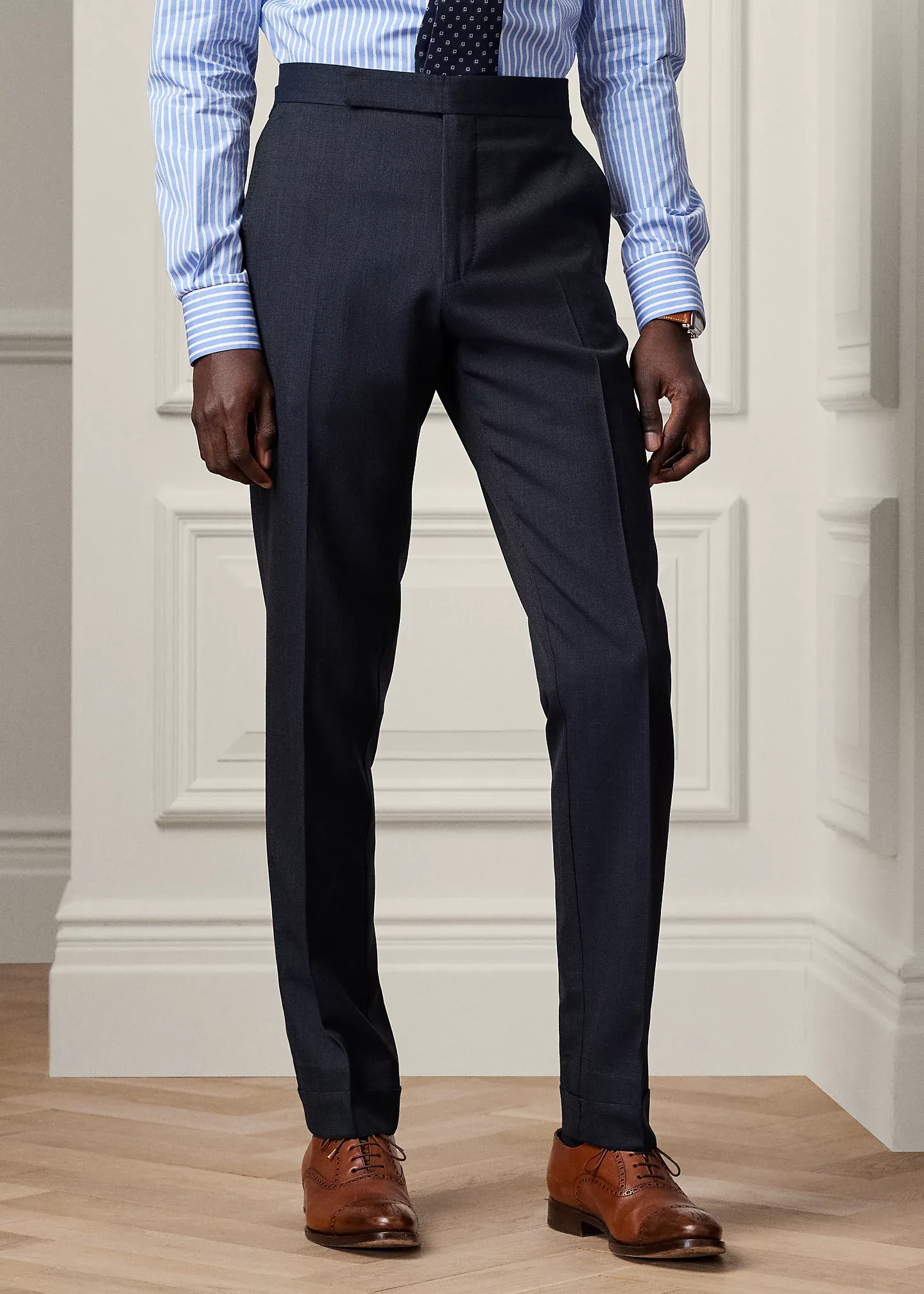 - Trouser: lined to the knees; comes unhemmed with a 38.25" inseam. Alterations available in Ralph Lauren retail stores.