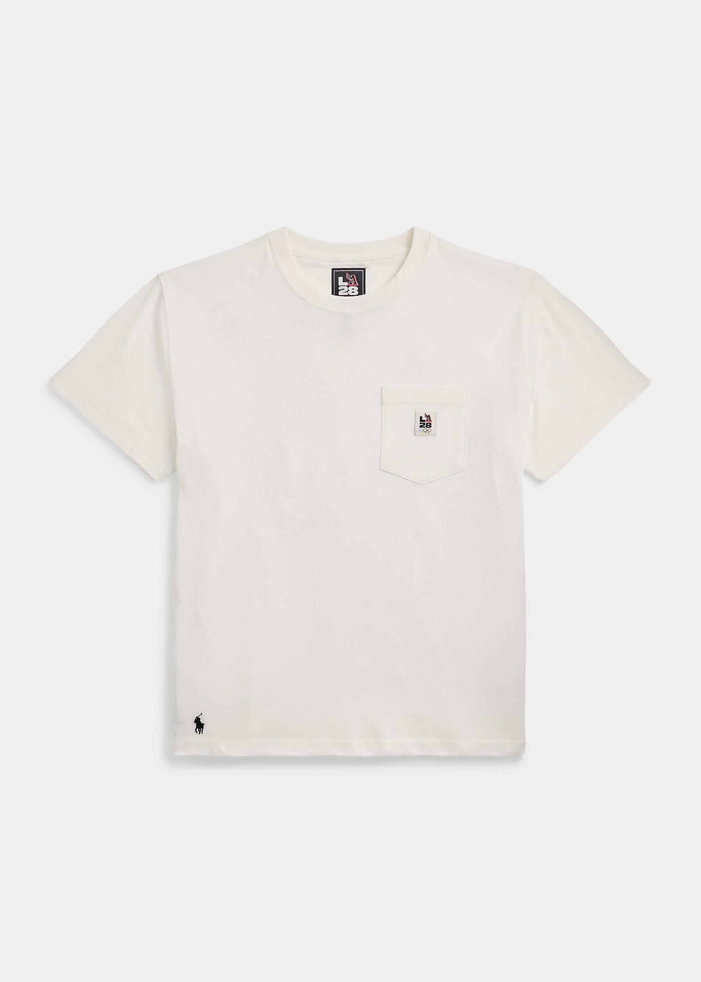 - Label with the official Games logo that includes “LA28” and the Olympic Rings at the pocket. Signature embroidered Pony at the right hem.