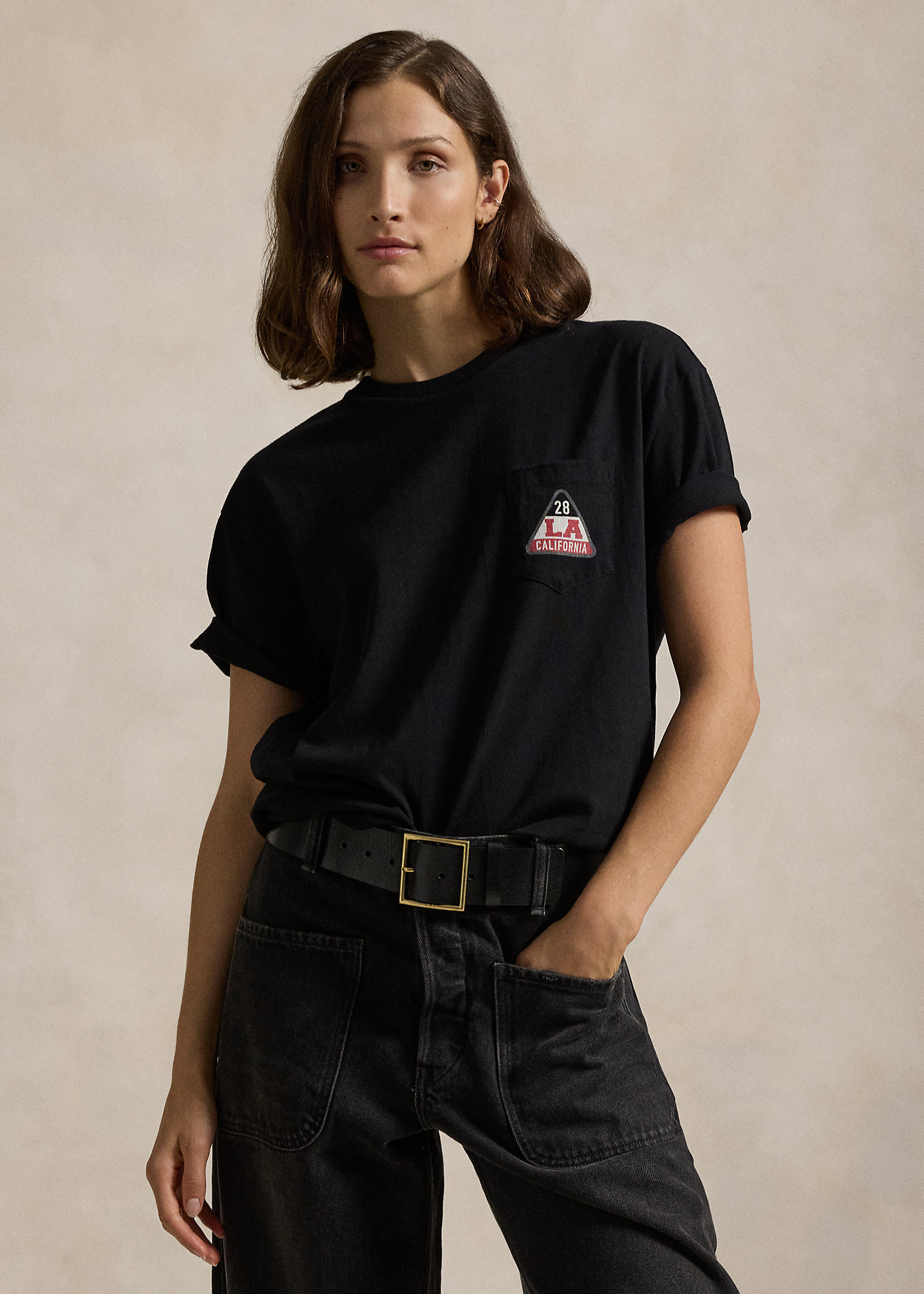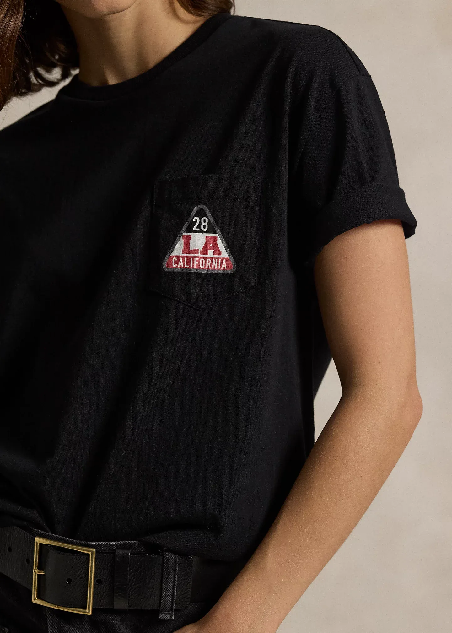 - Crewneck. Short sleeves. Left chest patch pocket.