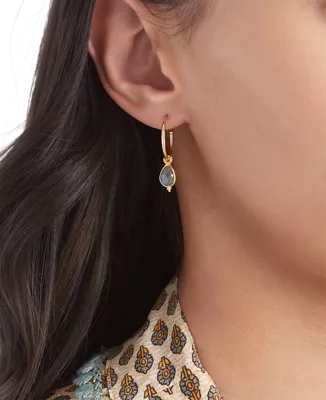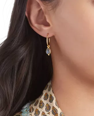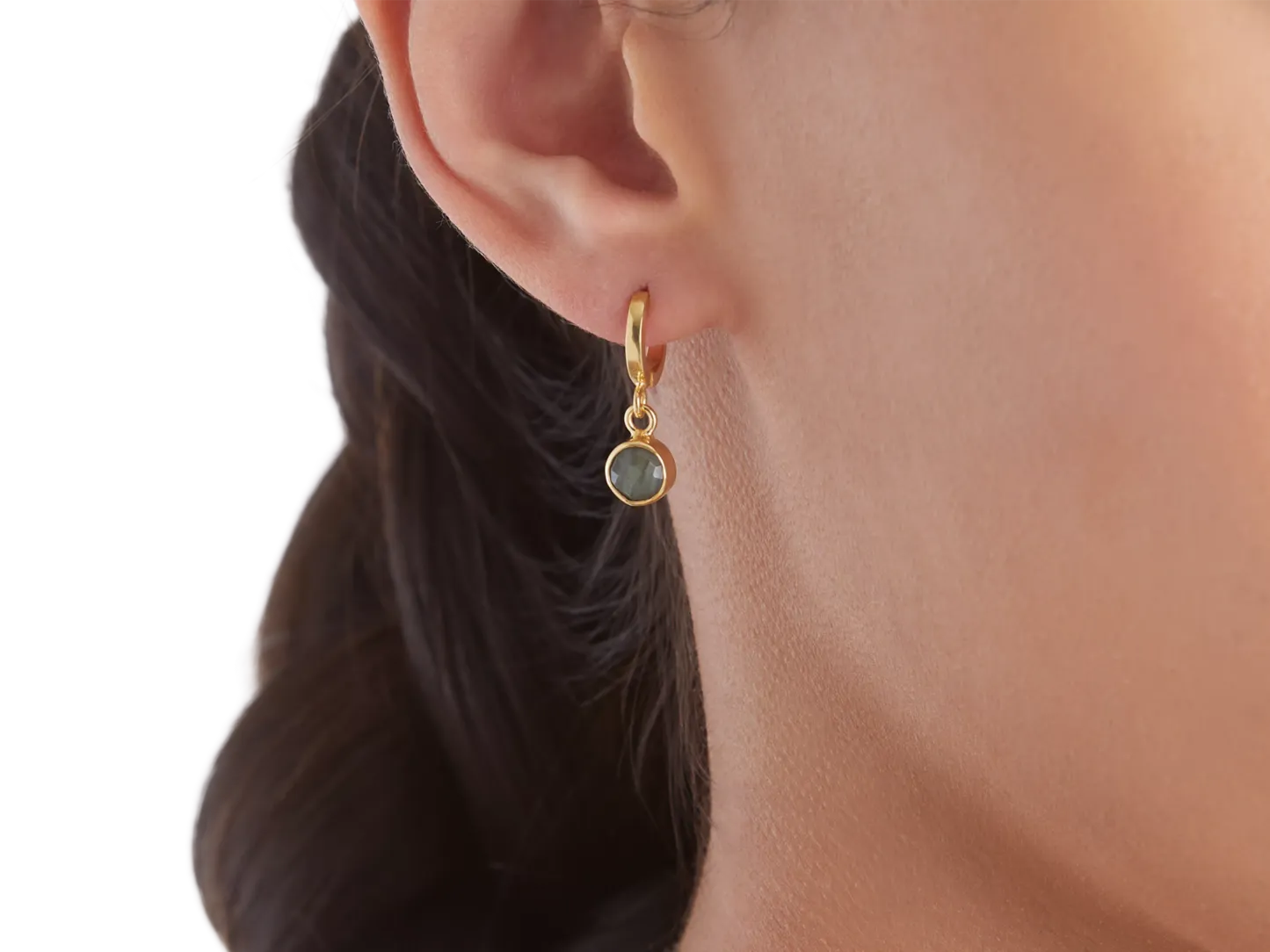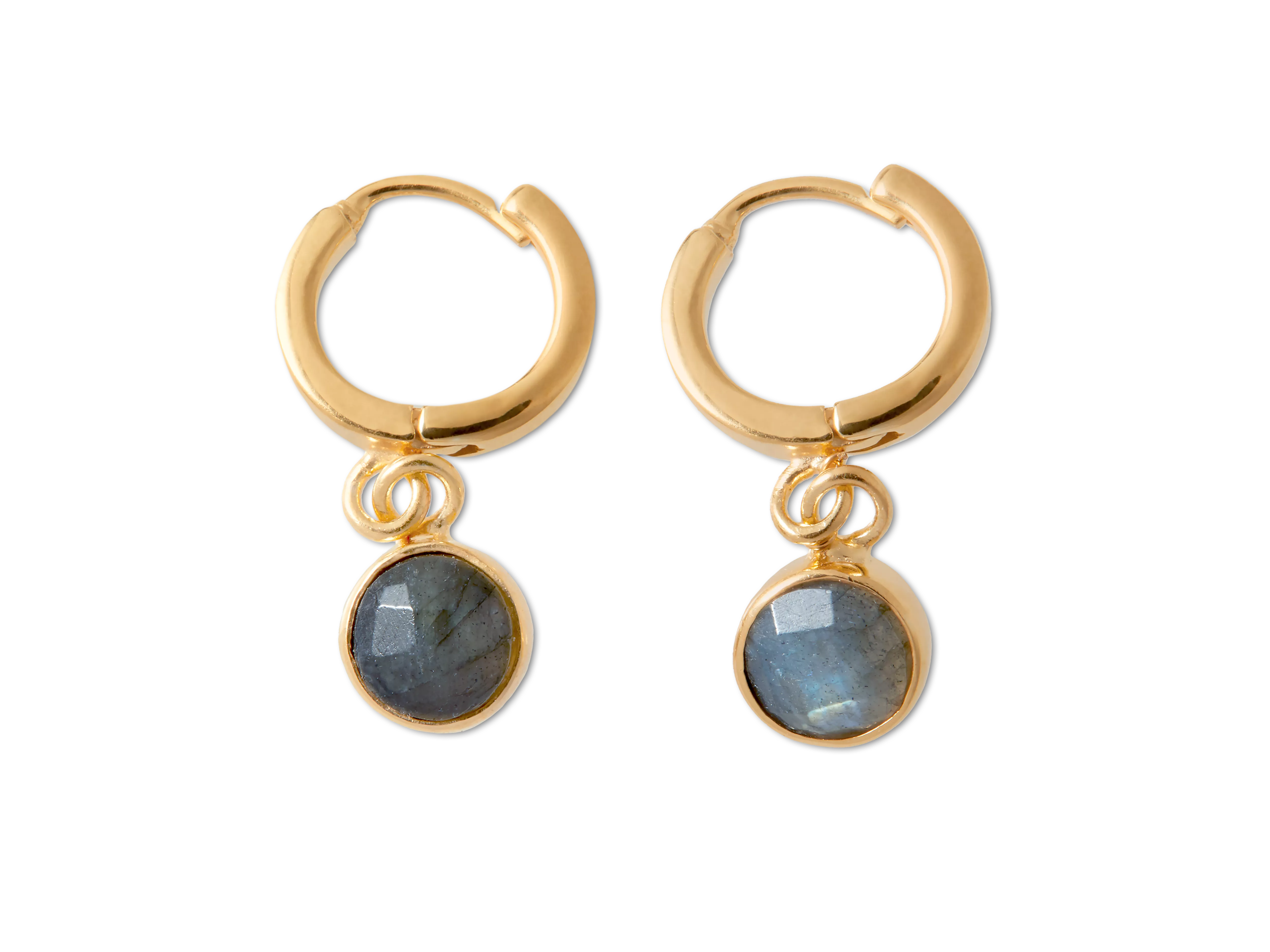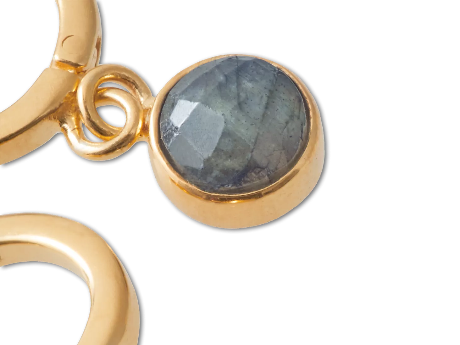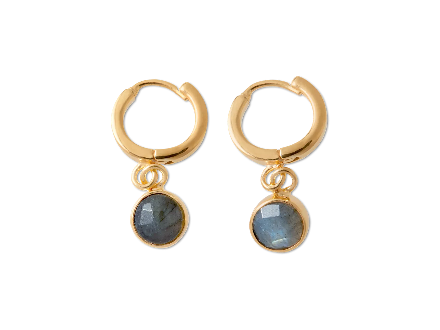 Deze tijdloze oorringen hebben een prachtige labradoriet edelsteen. Labradoriet staat bekend als een krachtige beschermer. Het bestrijdt stress en negatieve energie, en wekt je ware potentieel.
