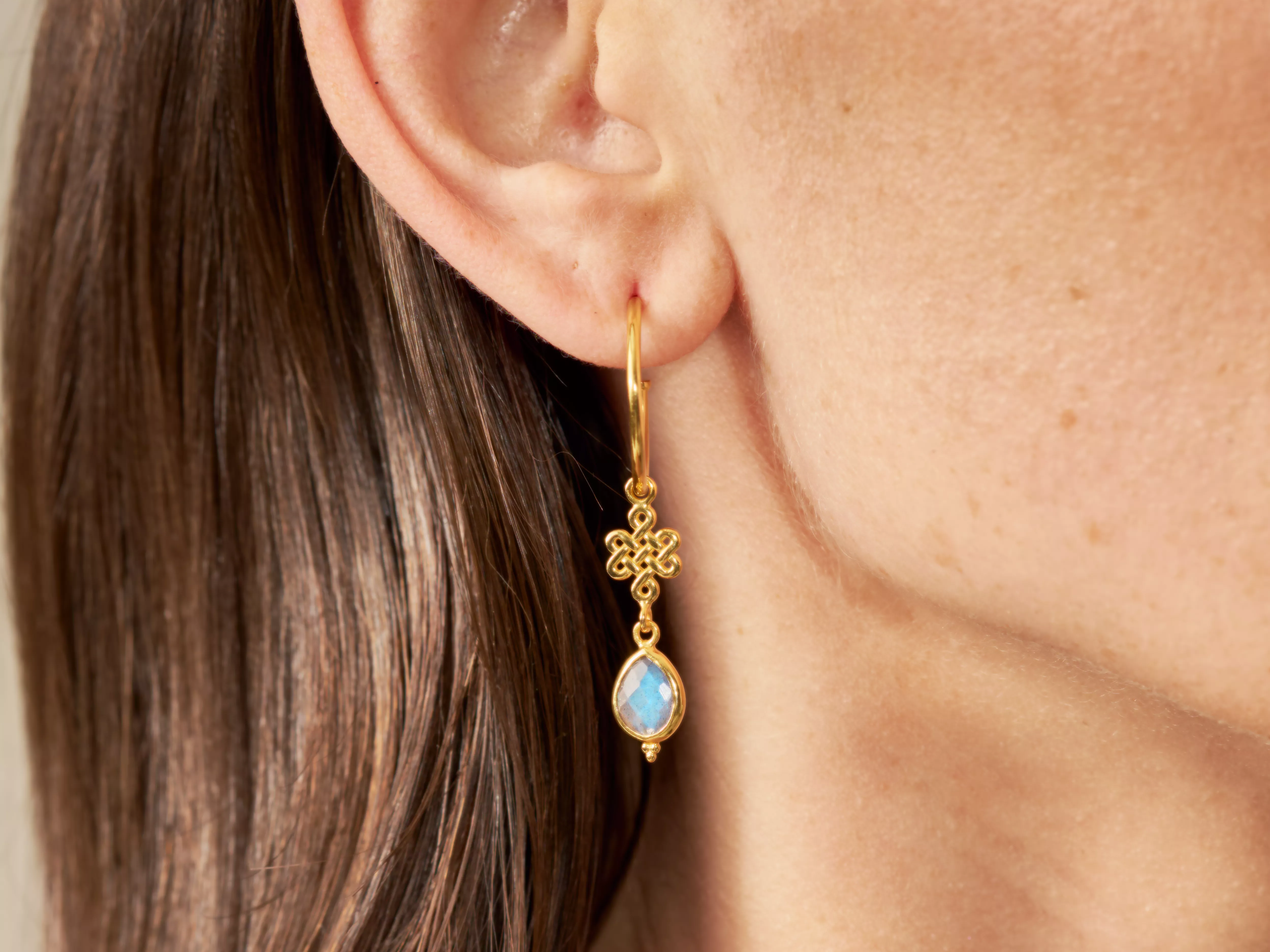 Labradorite Infinity Hoops Pendant Earrings Gold Plated