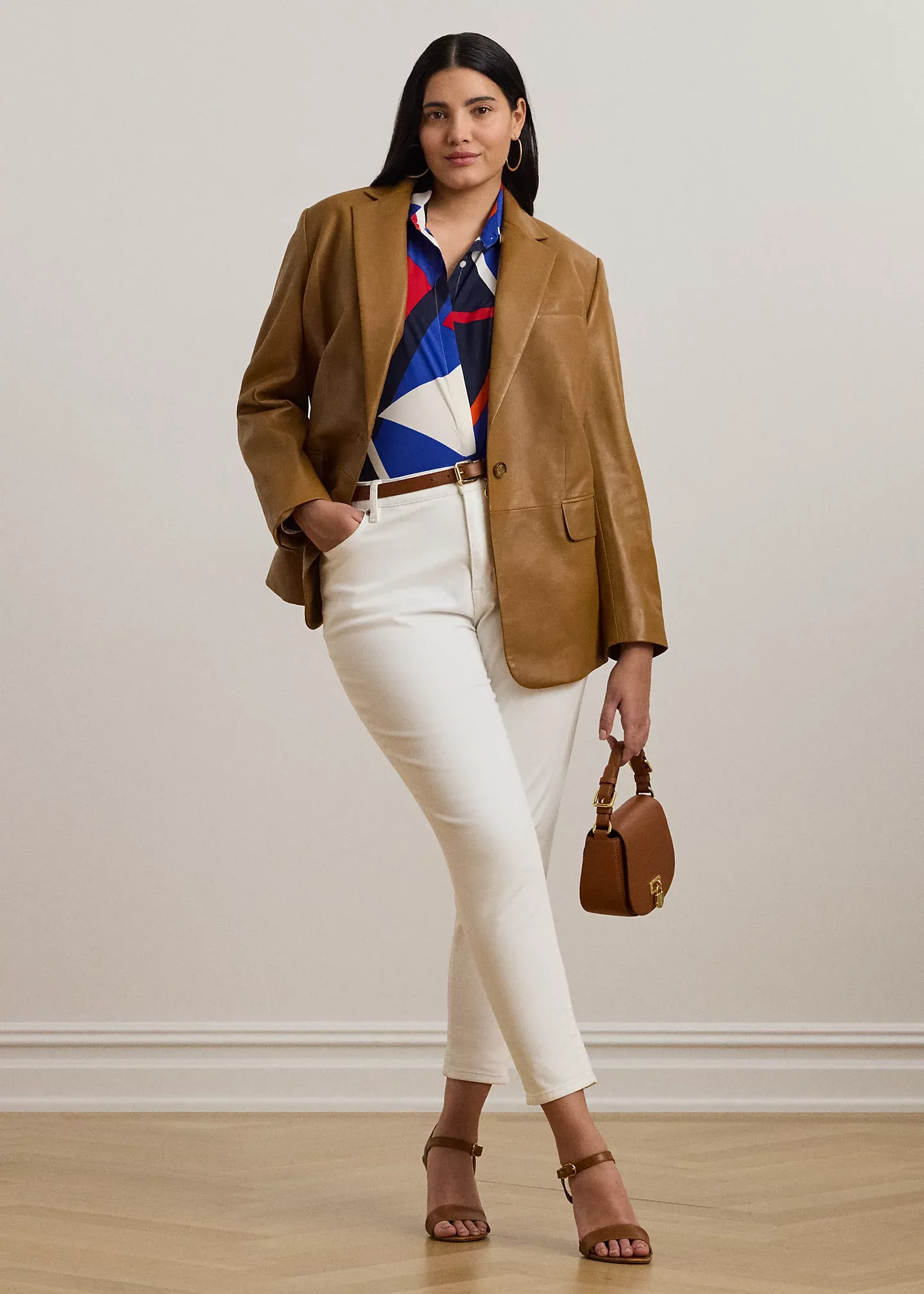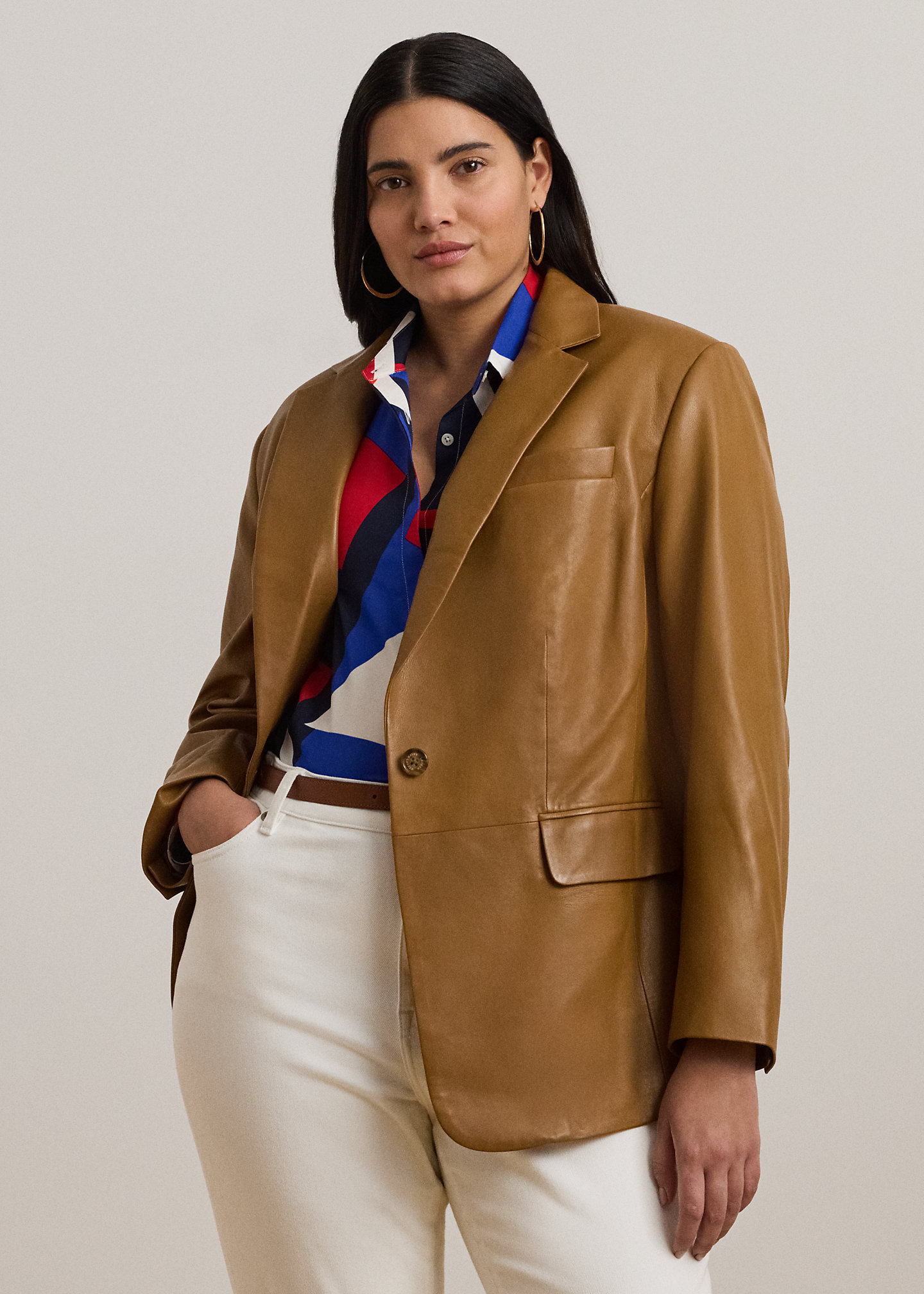 - Notch lapels. Single-button silhouette. “Lauren Ralph Lauren”–engraved horn-effect button.