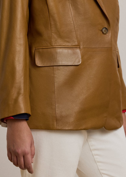 - Long sleeves with four-button cuffs. “Lauren Ralph Lauren”–engraved horn-effect buttons. Shoulder pads. Two front waist flapped pockets. Left chest angled welt pocket.