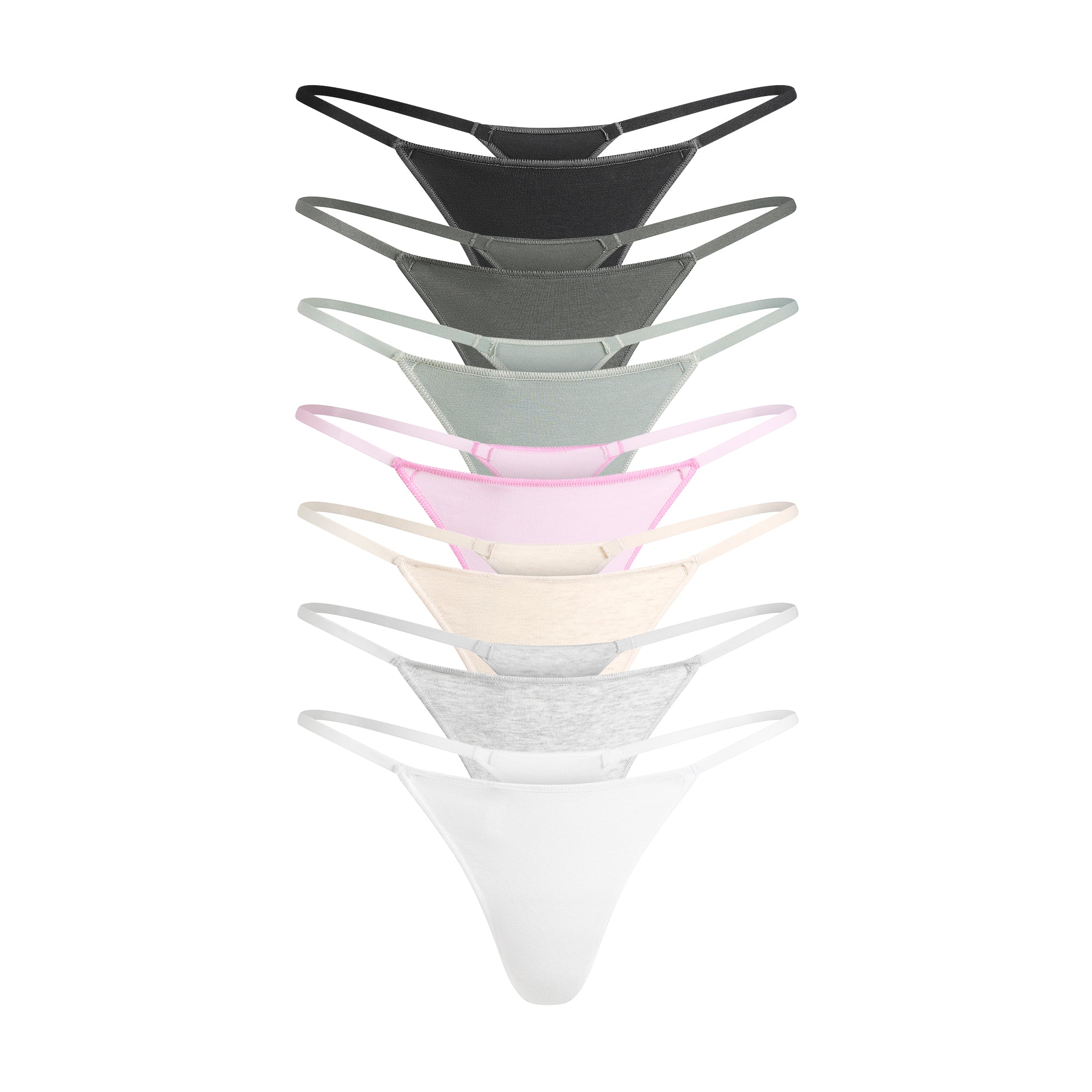 Lightweight comfort underneath it all. Designed in our soft, lightweight cotton, this string thong pack features seven panties with elastic straps and 100% cotton gussets. Fits true to size.