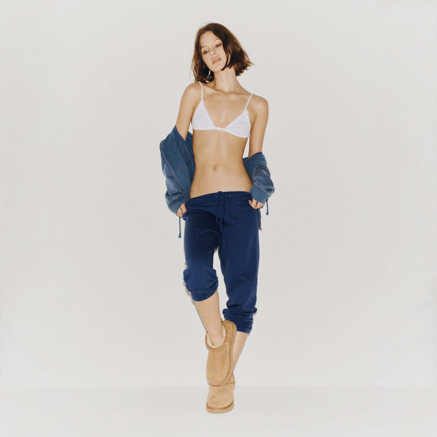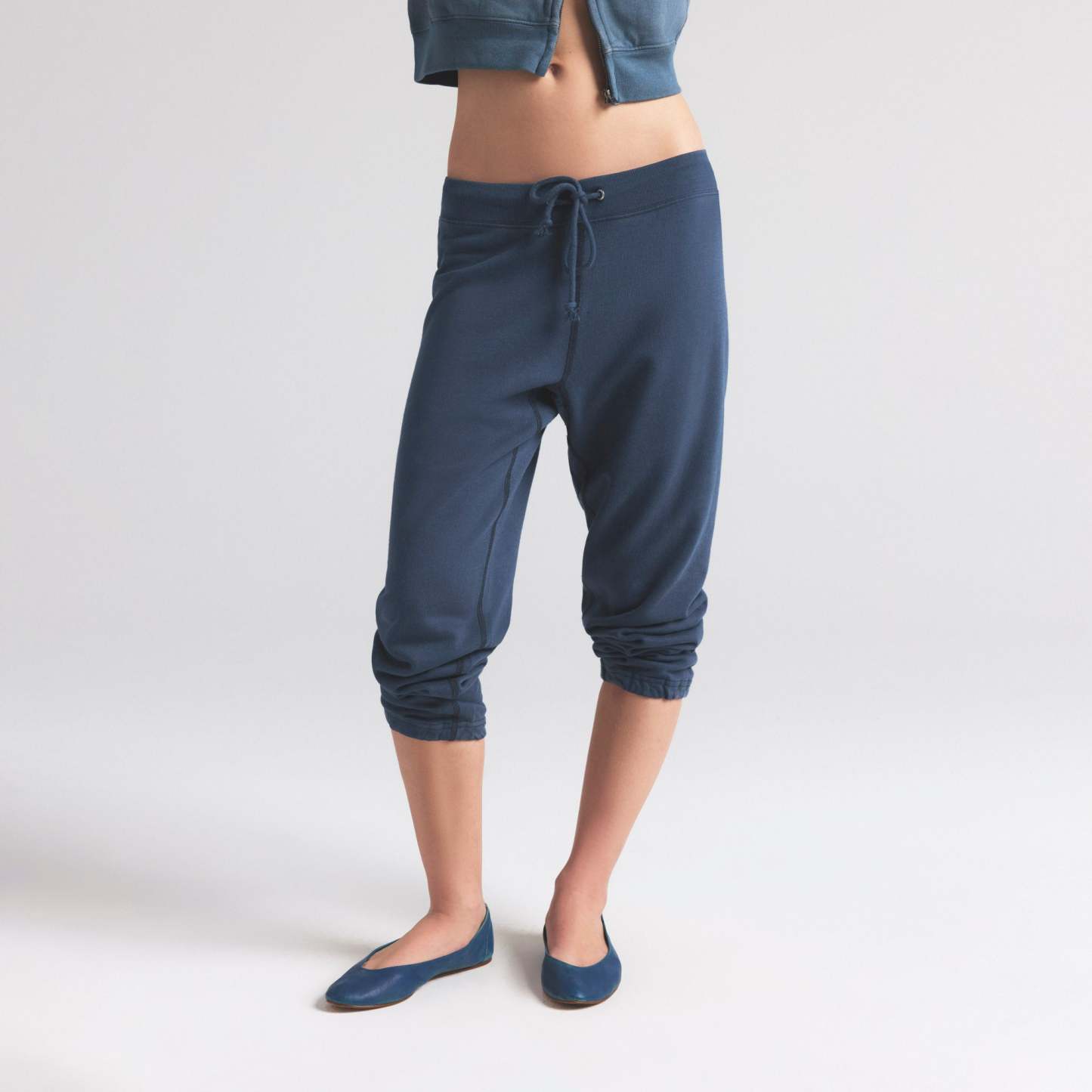 - Exterior drawcord for adjustability, Slim fit, Cropped length