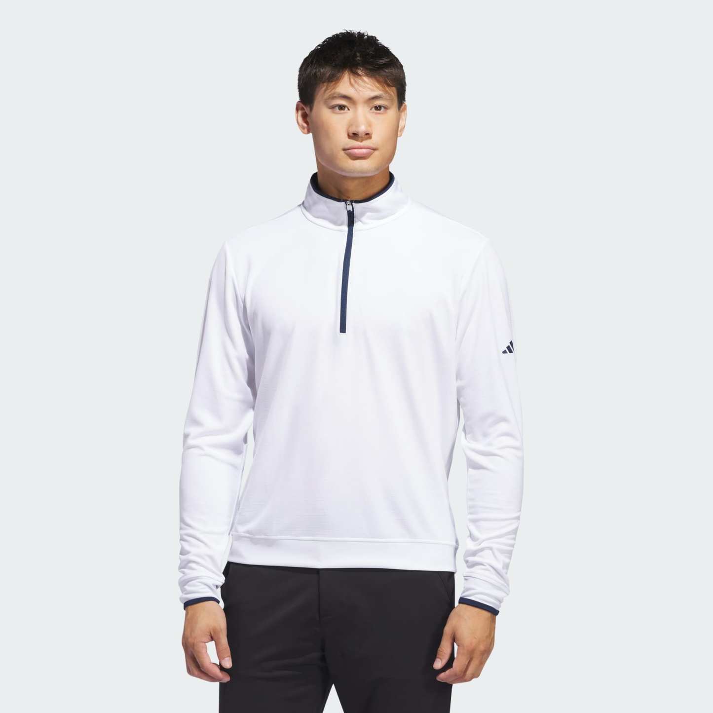 Stay relaxed and comfortable in cool weather thanks to this adidas golf top. The half-zip design lets you regulate your temp as the day warms or cools. Lightweight, double-knit fabric has a soft hand that offers the mobility to move and follow through with every swing.This product is made with 100% recycled materials. By reusing materials that have already been created, we help to reduce waste and our reliance on finite resources and reduce the footprint of the products we make.