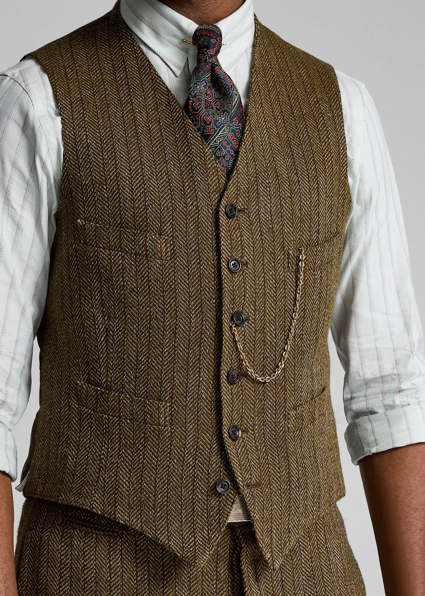 Linen-Blend Herringbone Vest