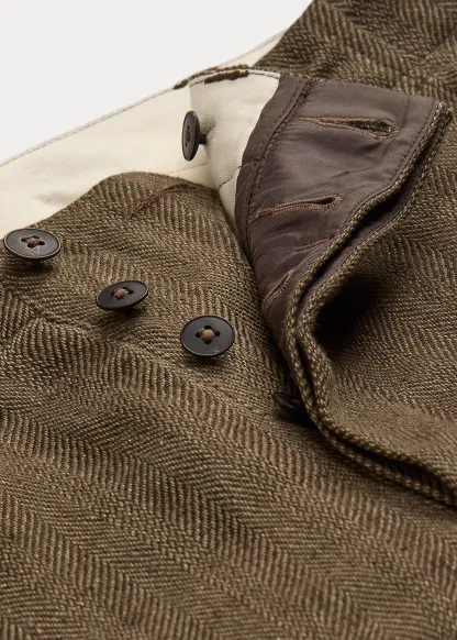 Belt loops. Button fly with a buttoned closure. Corozo buttons.