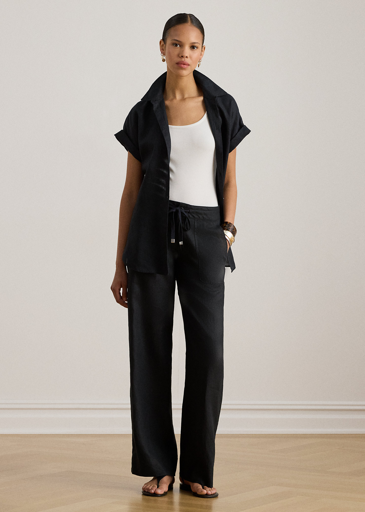 - Self-tie cinched drawcord waist.