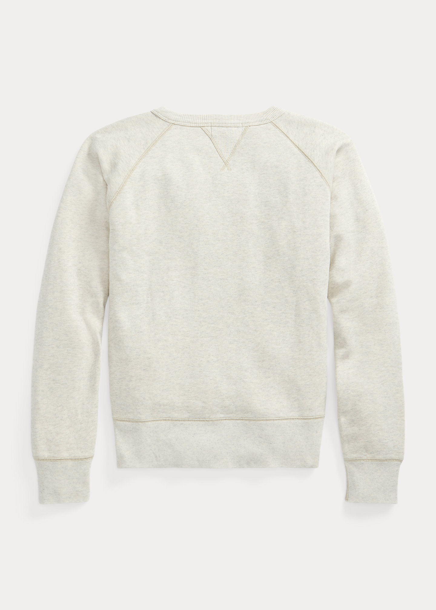 - Crewneck with a ribbed double V-inset.