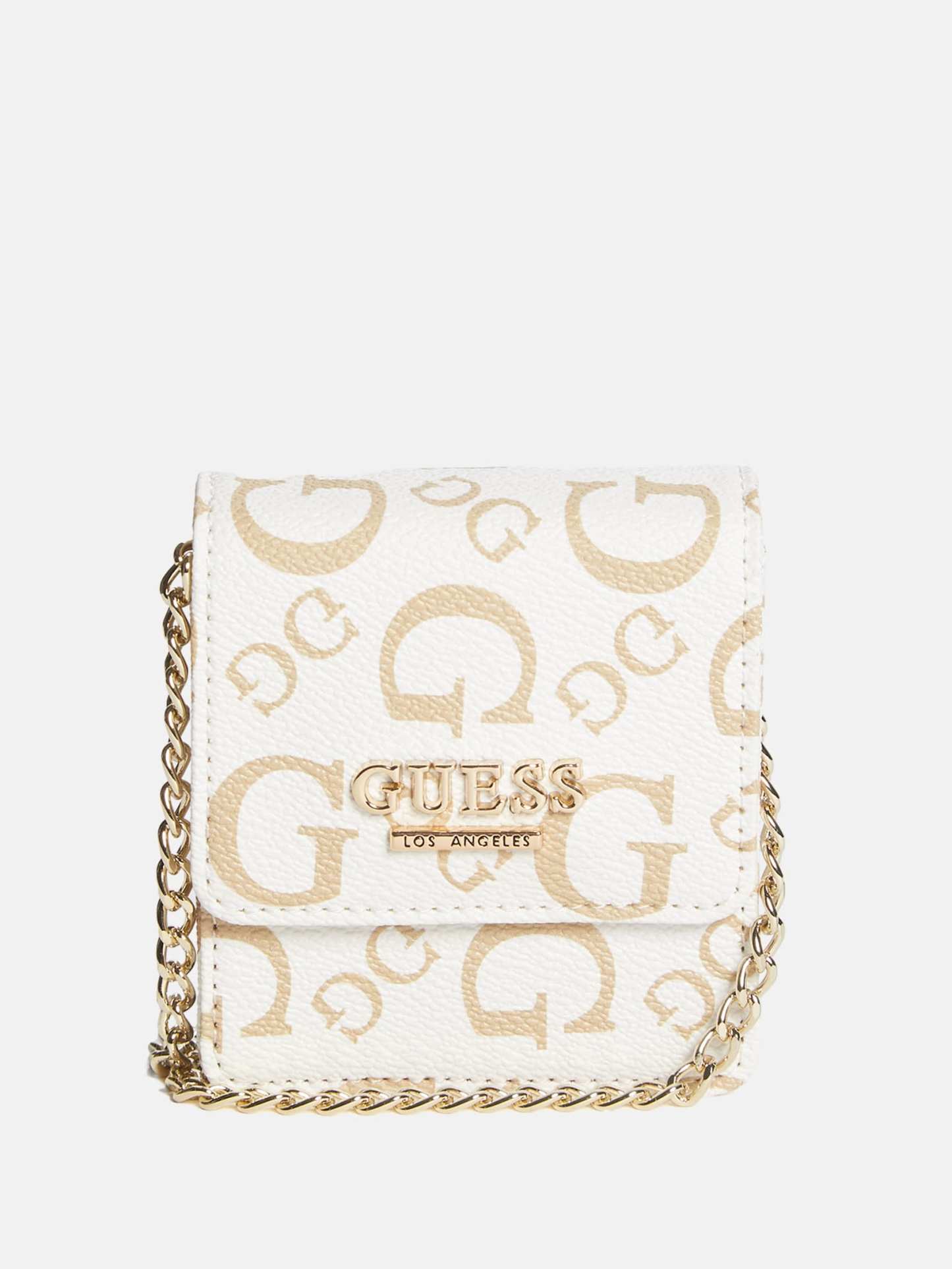 There's nothing small about the style of this faux-leather mini bag featuring a logo emblem on the fold-over flap closure and sleek chain strap.