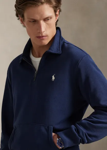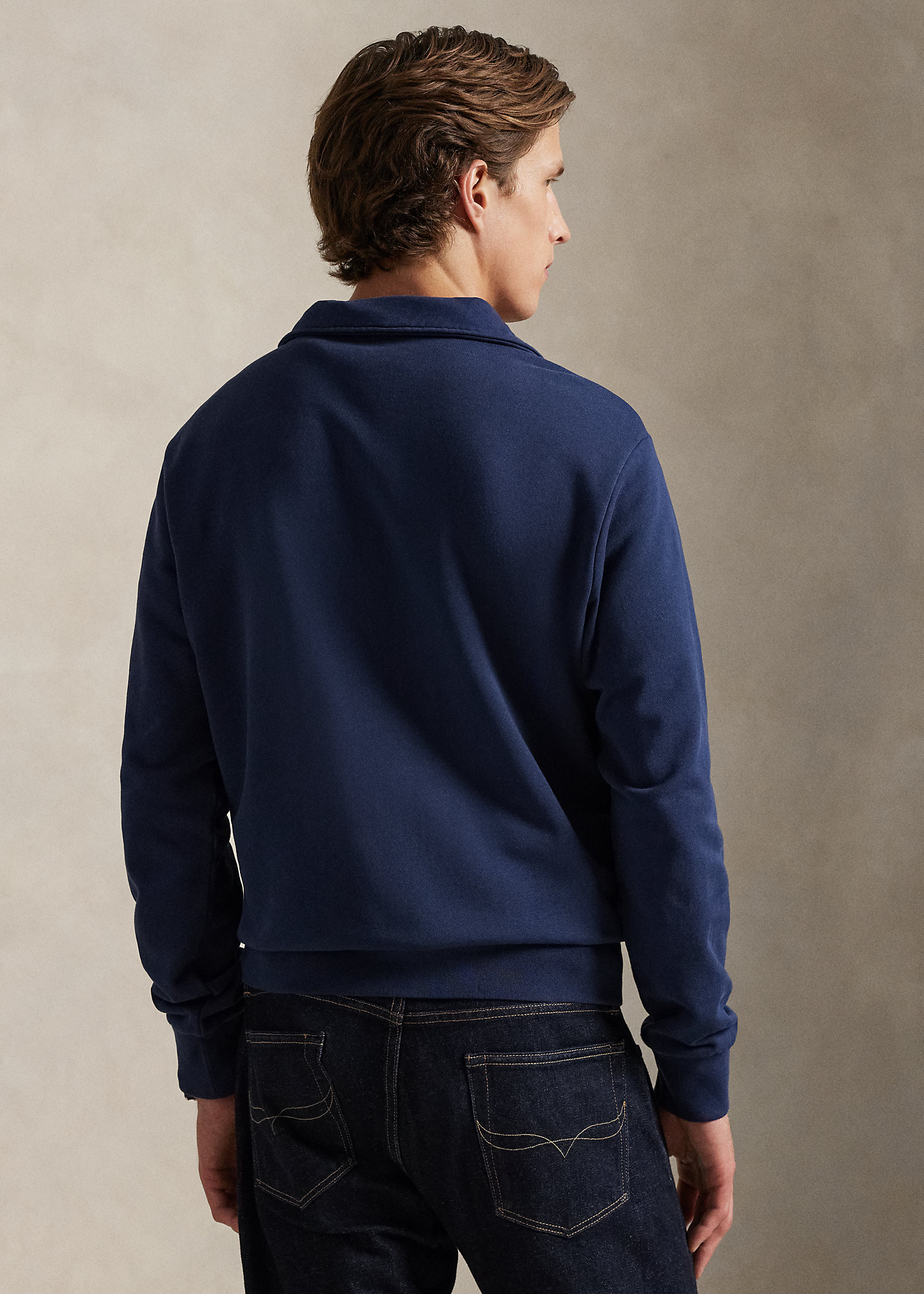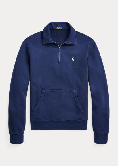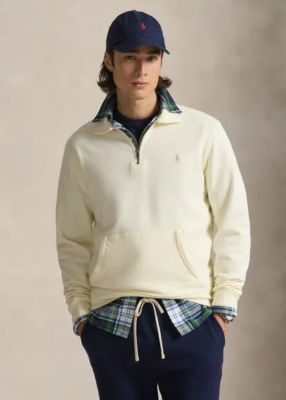 Point collar. Quarter-zip placket.