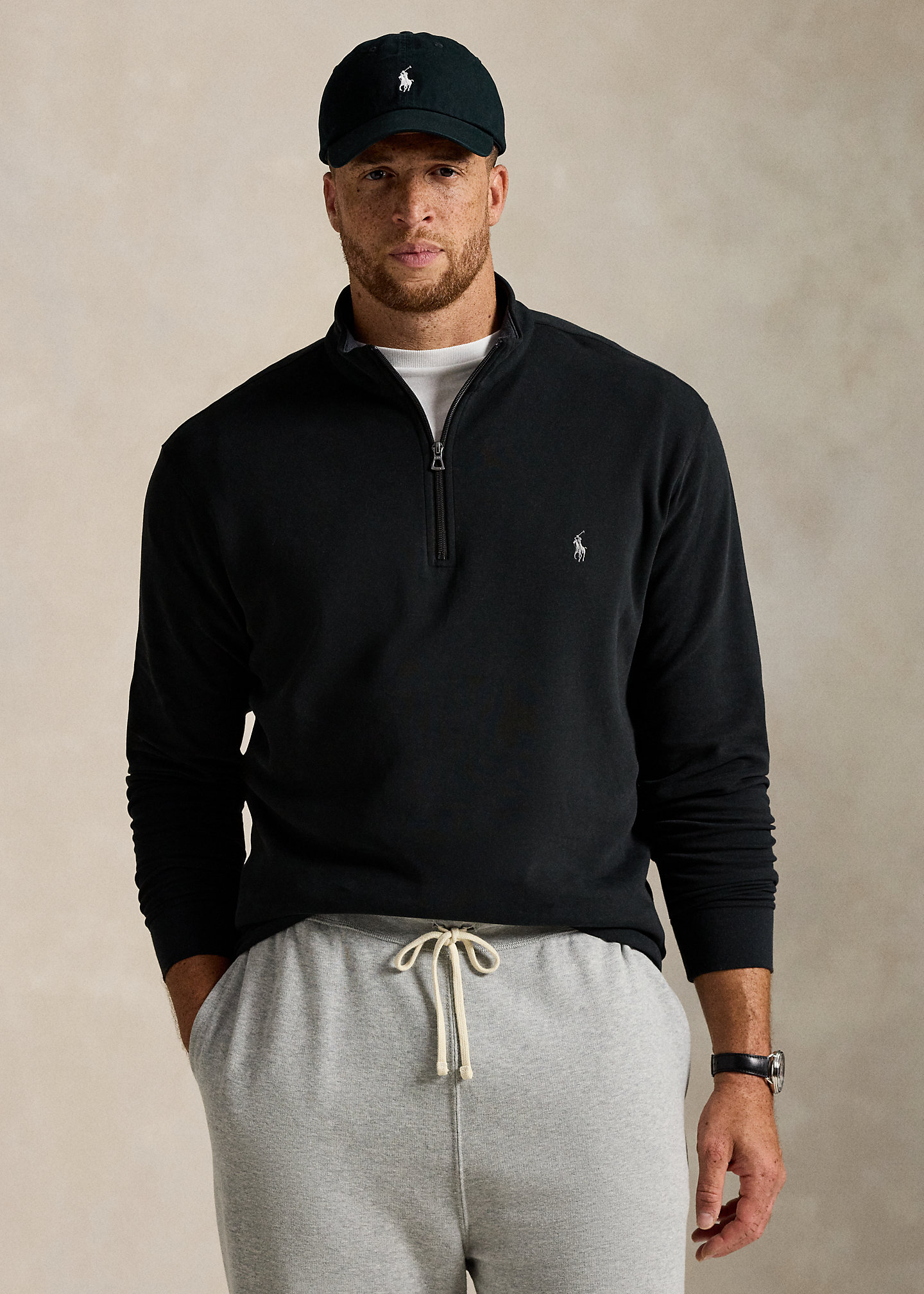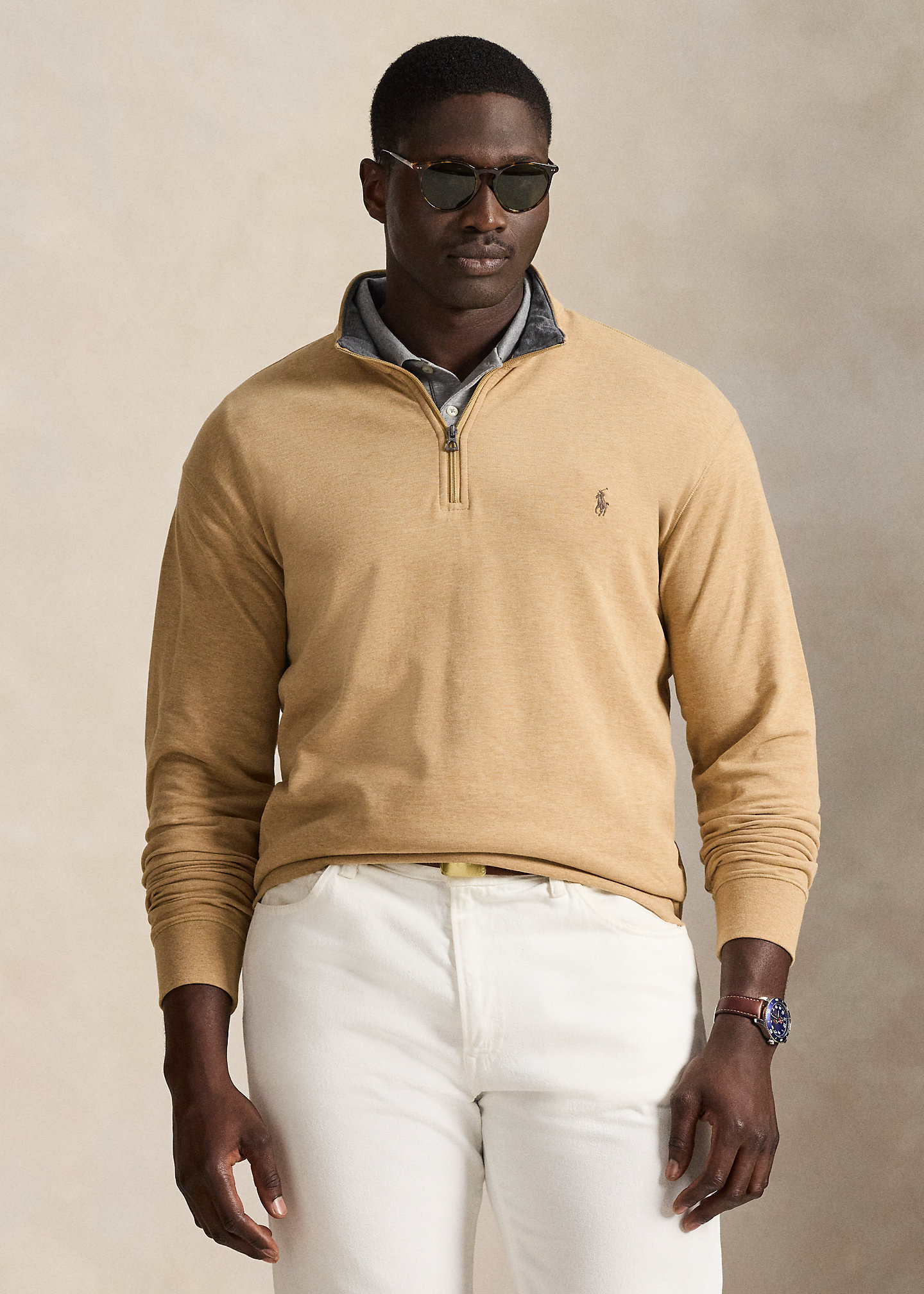 - Mockneck. Quarter-zip placket.