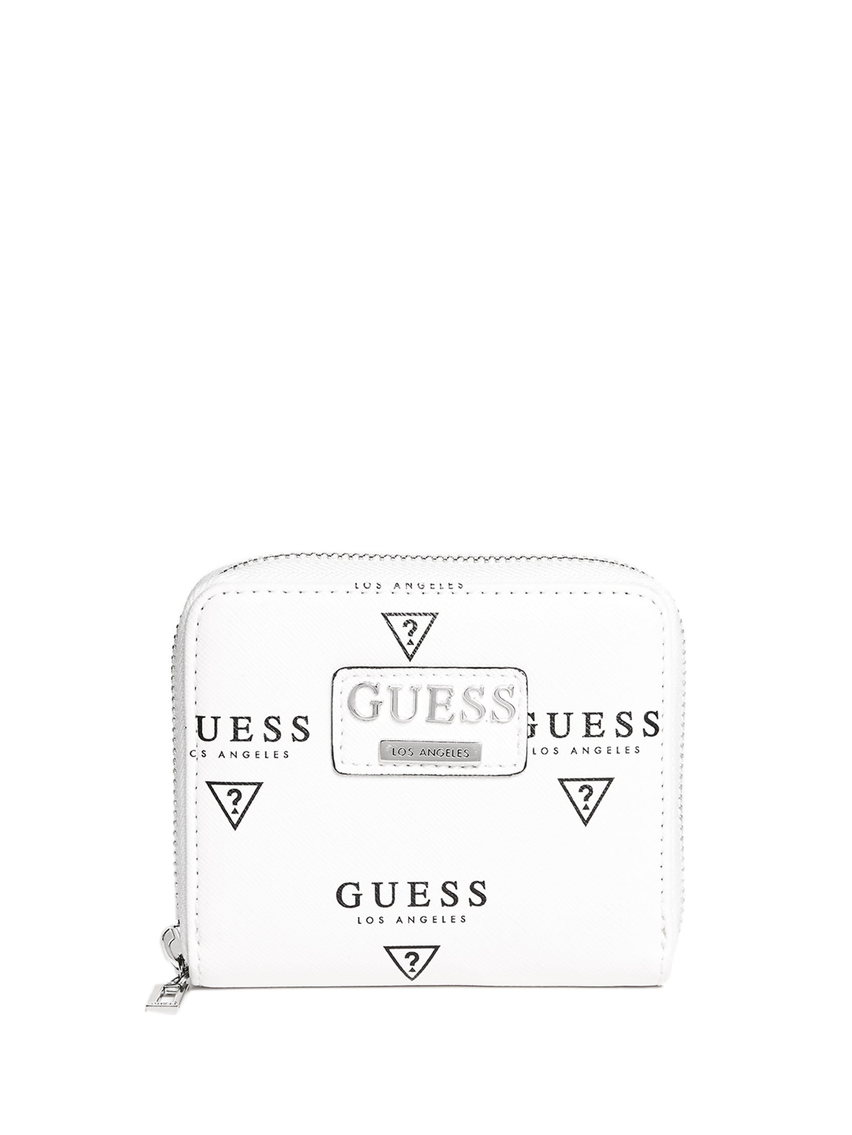 Faux-leather wallet designed with a logo print, featuring a logo emblem, interior coin pouch and zip-around closure.