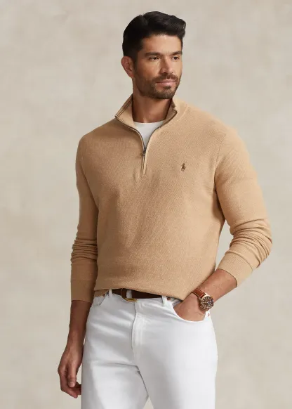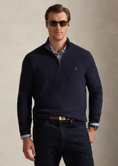 Mesh-Knit Cotton Quarter-Zip Sweater
