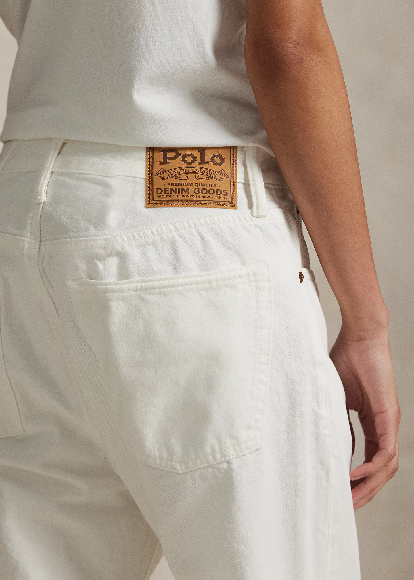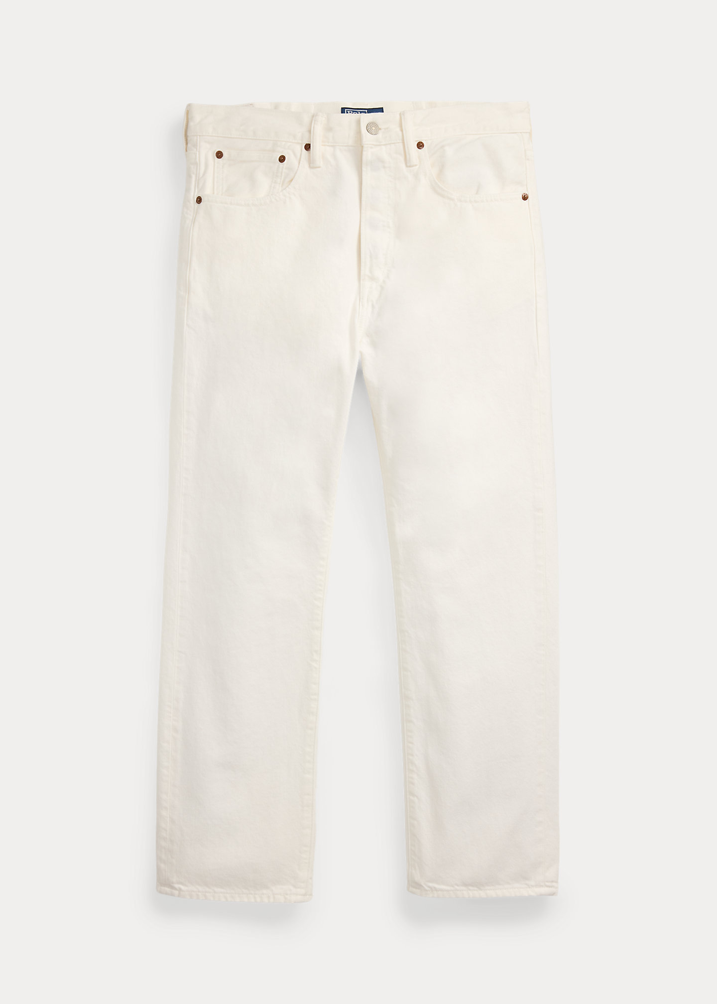 - Belt loops. Buttoned fly with a buttoned closure. Signature metal buttons.