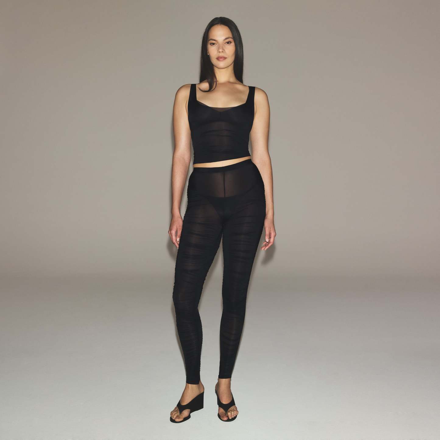 Elevate your warm-weather wardrobe with these sheer high-waisted leggings. Made from our lightweight Milky Sheer fabric, this style features sexy ruching details and a raw cut leg opening. Complete with an elastic waistband and fits true to size. Layer with coordinating Fits Everybody styles for a tonal look.