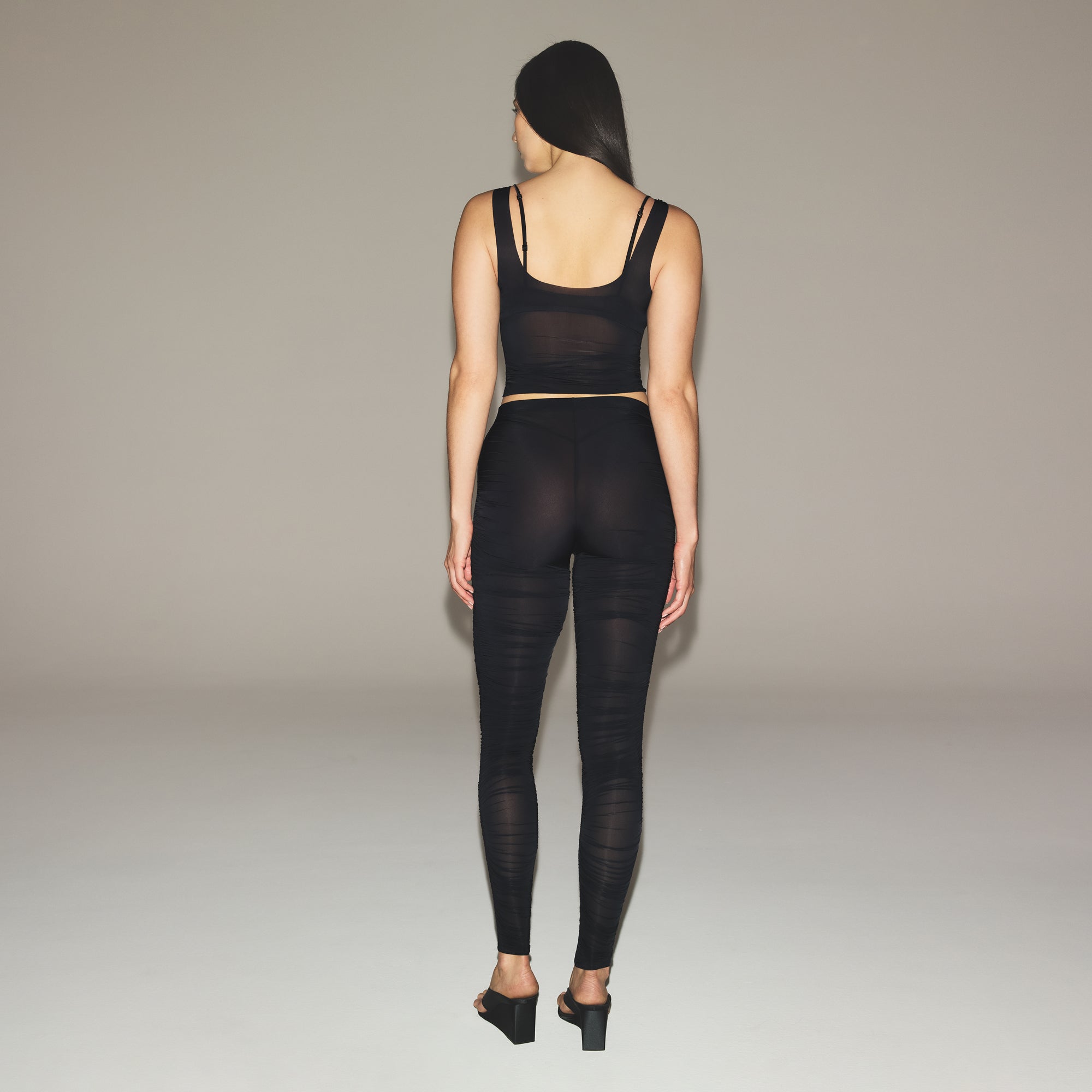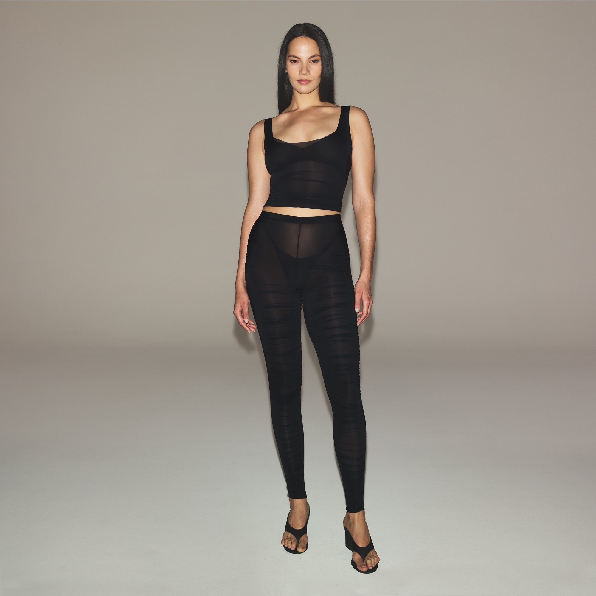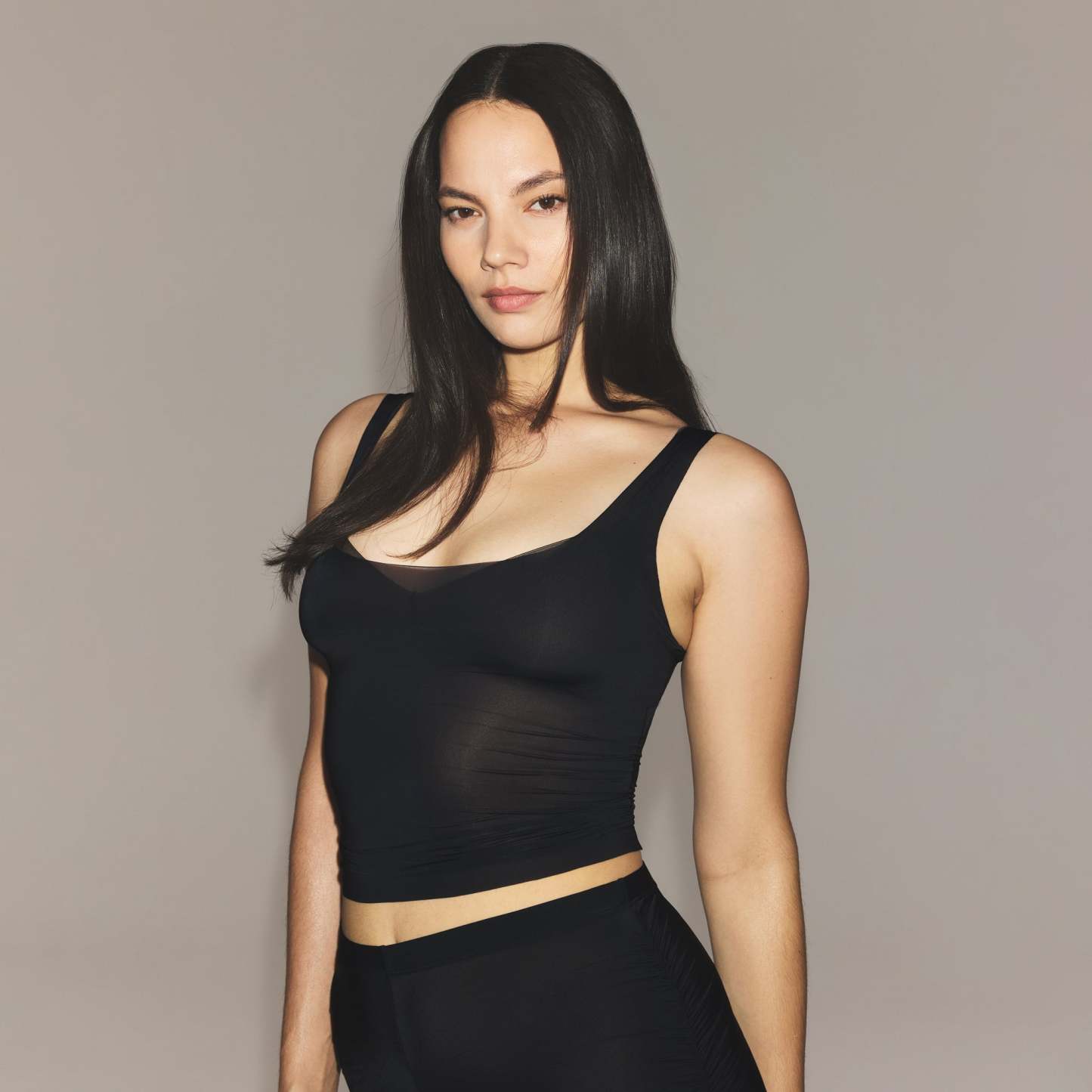 Summer’s sheer essential. This body-hugging tank is designed in our lightweight Milky Sheer fabric for a sexy, chic look. Features a scoop silhouette in the front and back and raw cut details. Fits true to size. Layer with coordinating Fits Everybody styles for a tonal look.