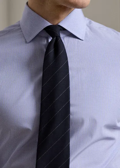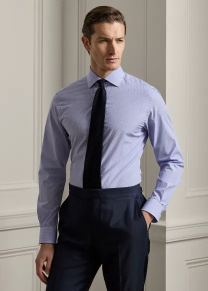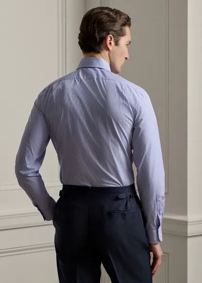 - Split pleated back yoke ensures smooth, contoured shoulders.
