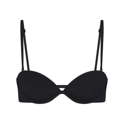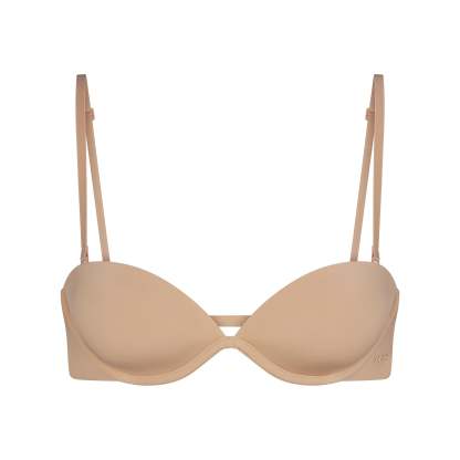 One solution for all your needs. This game-changing, lightly lined underwire bra is designed with four strap loops and removable straps that can be adjusted to wear 30 different ways — with every neckline and for any occasion. Features a plunge neckline, interior silicone technology for max grip, and side boning for added support. Some of the ways to wear it include: halter, strapless, one shoulder, criss-cross, and so many more. Pair the removable, adjustable center back strap with a bra extender for an invisible look under low-back styles. Fits true to your SKIMS bra size.