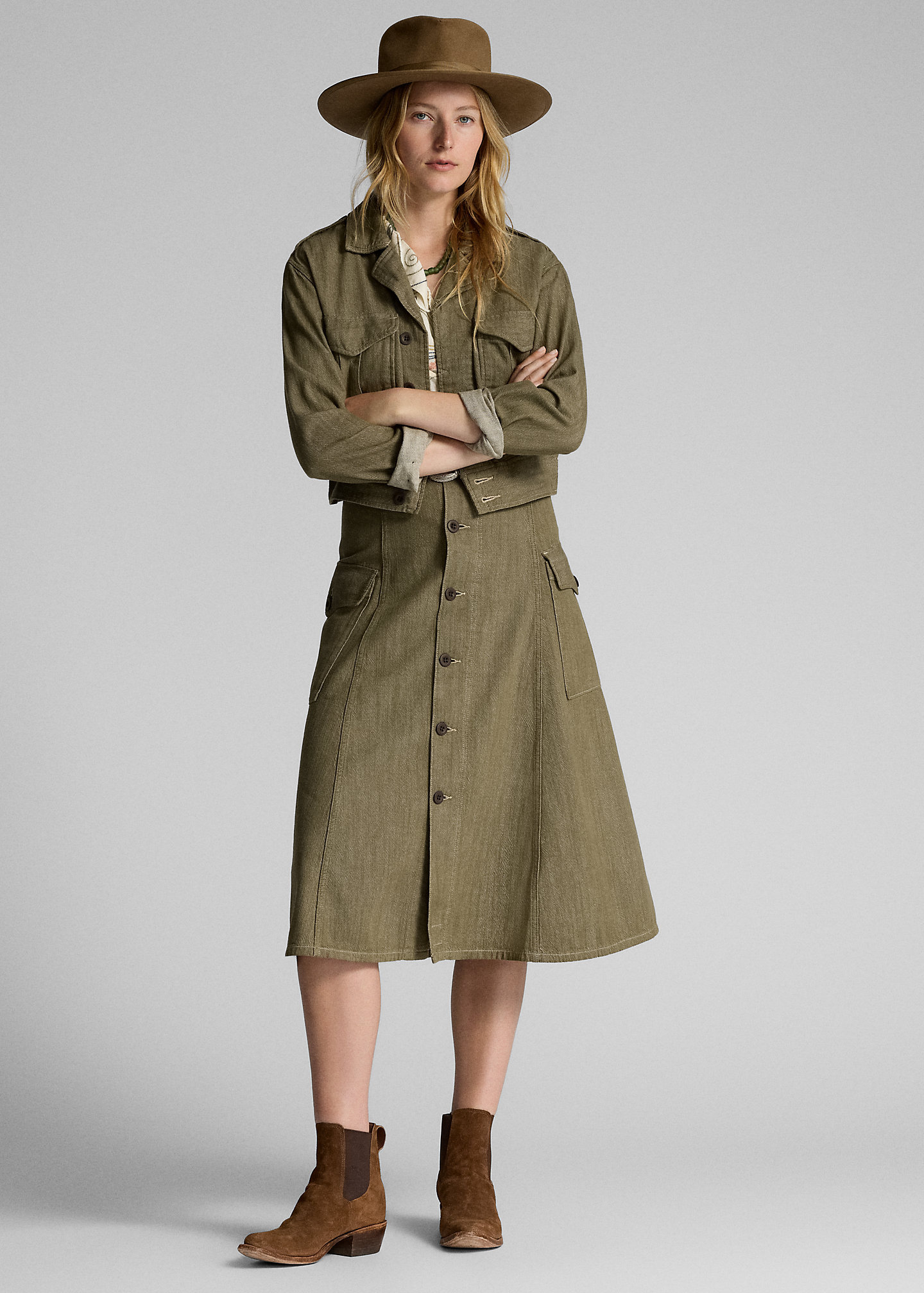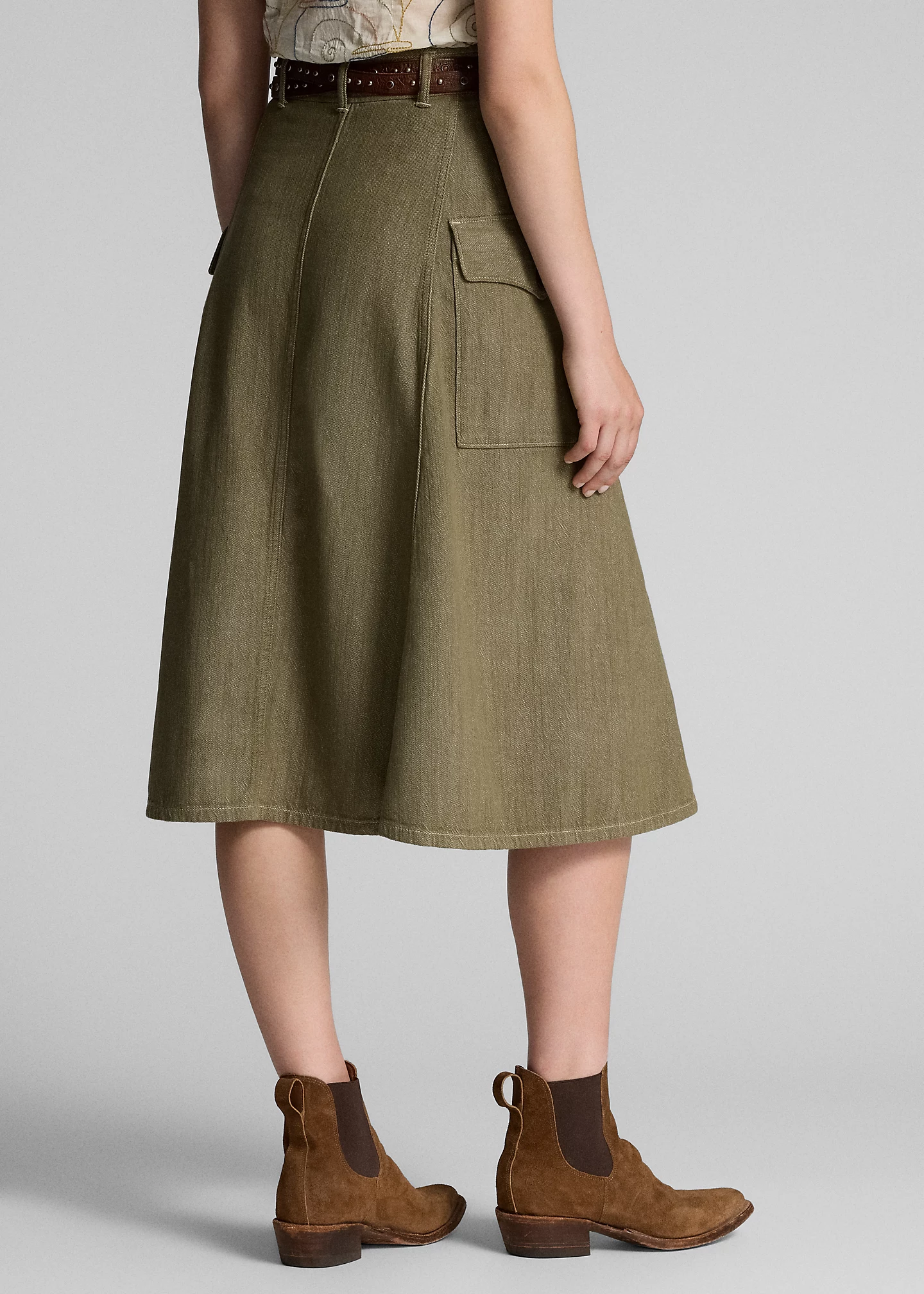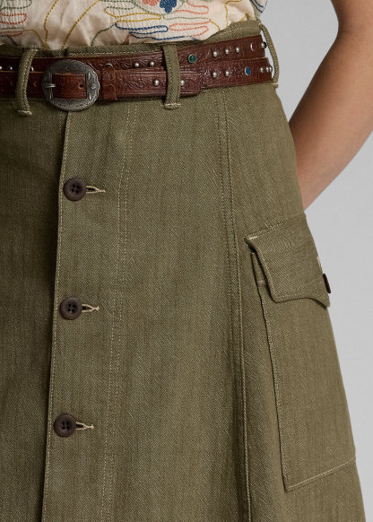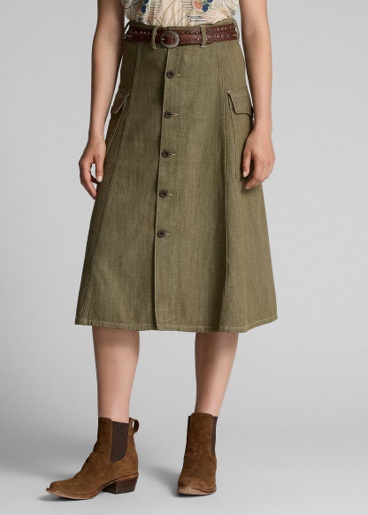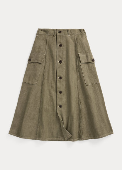Olive Slub Denim Skirt