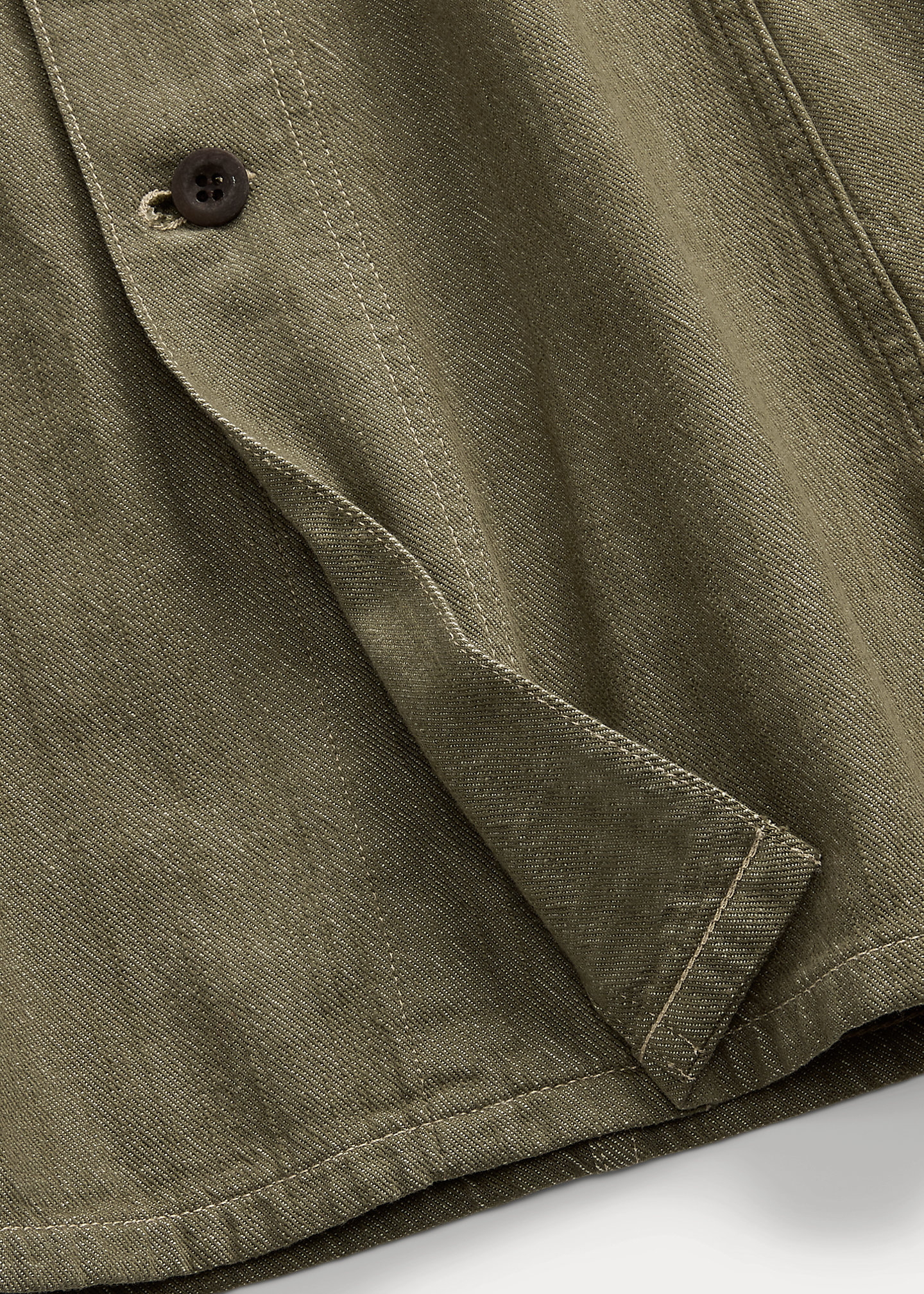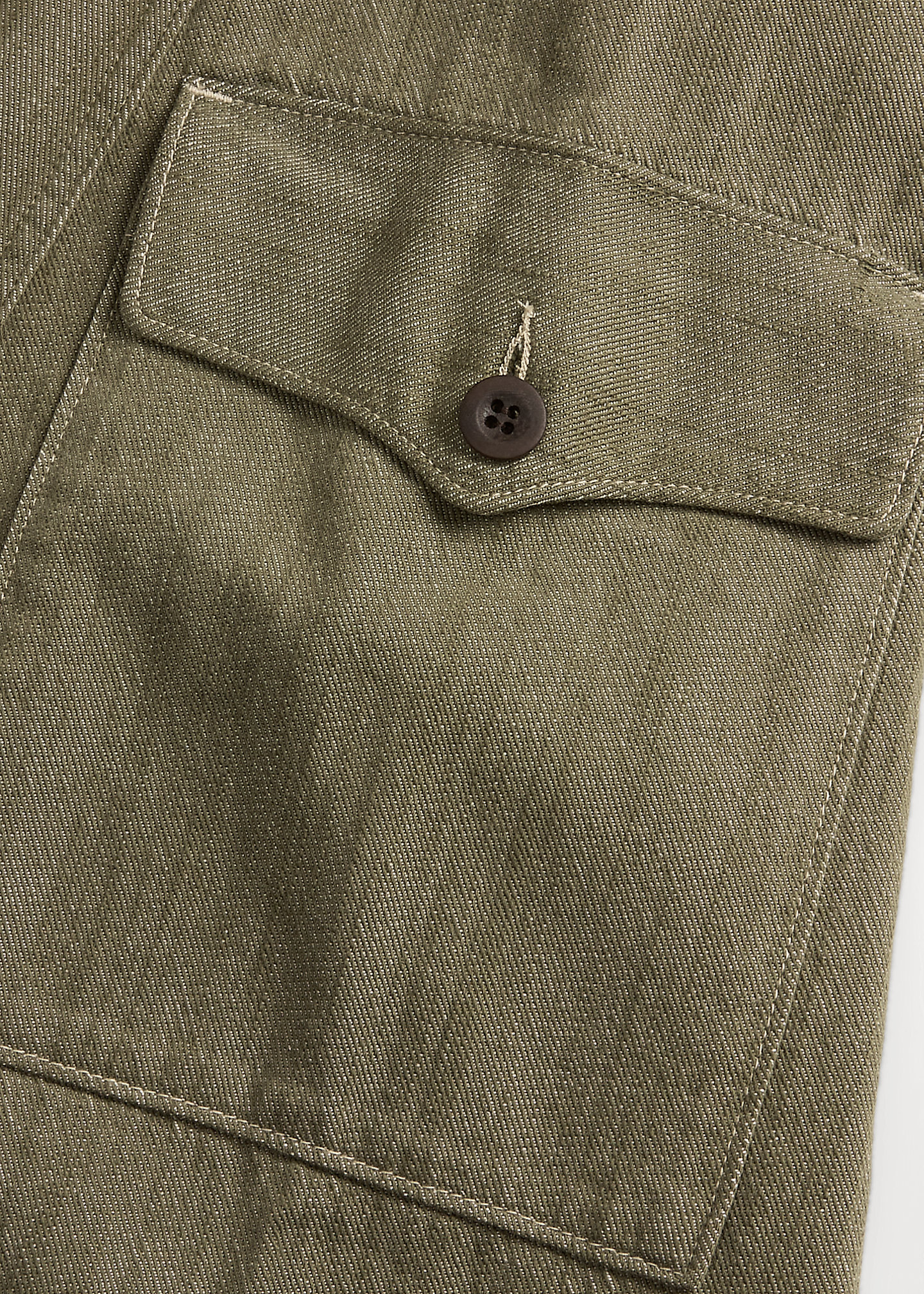 - Belt loops. Buttoned front. Corozo buttons.
