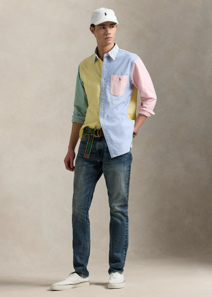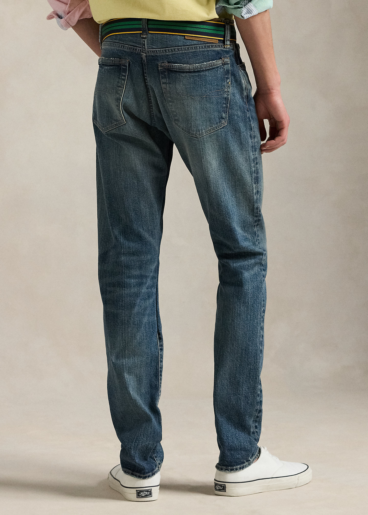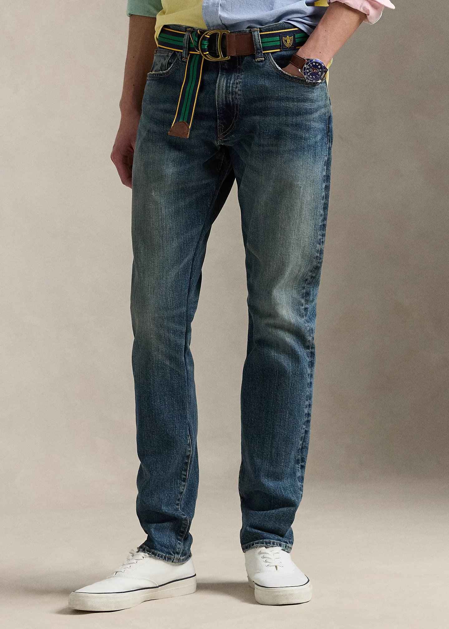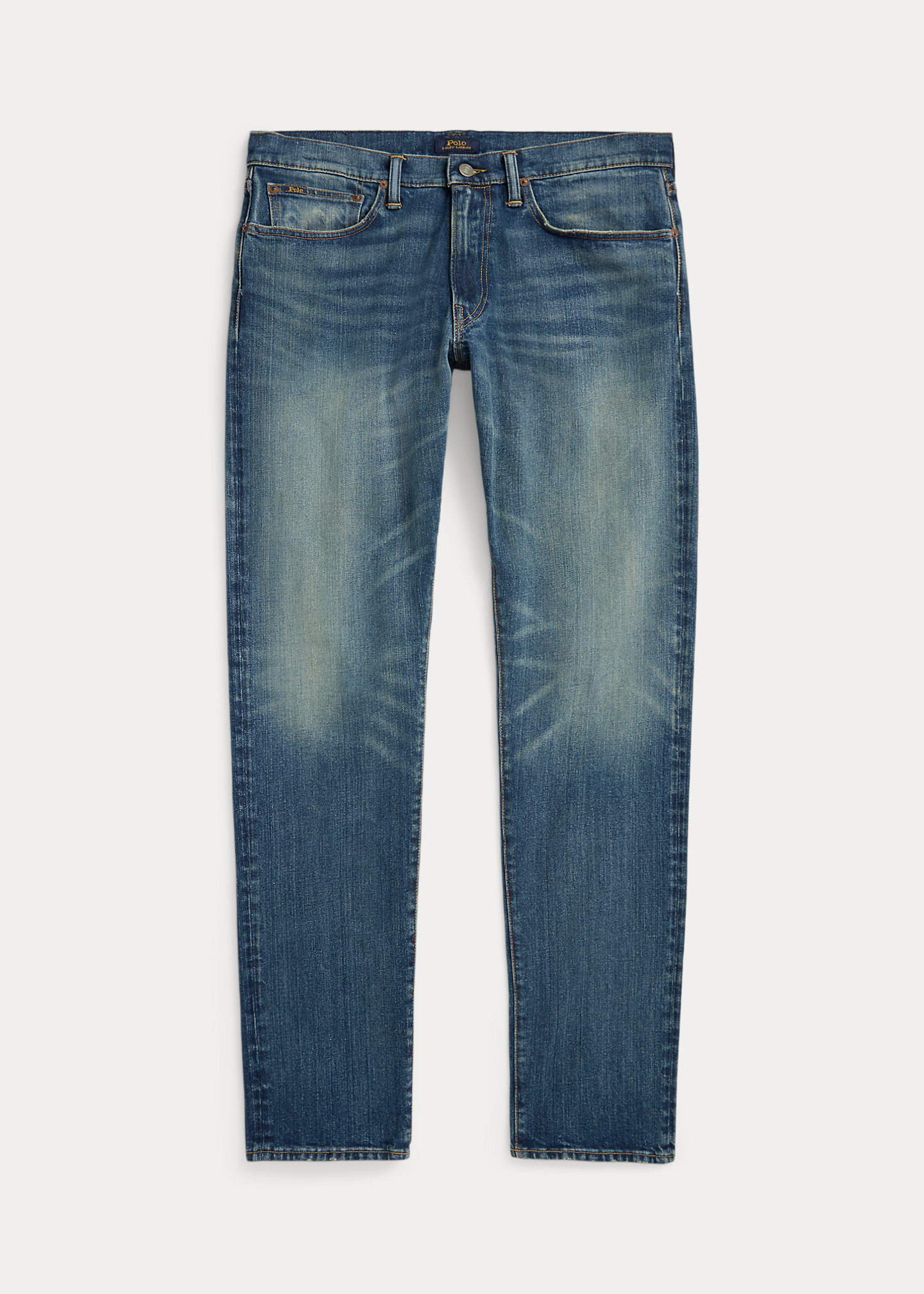 - Five-pocket styling with signature metal rivets. "Polo" label at the coin pocket.