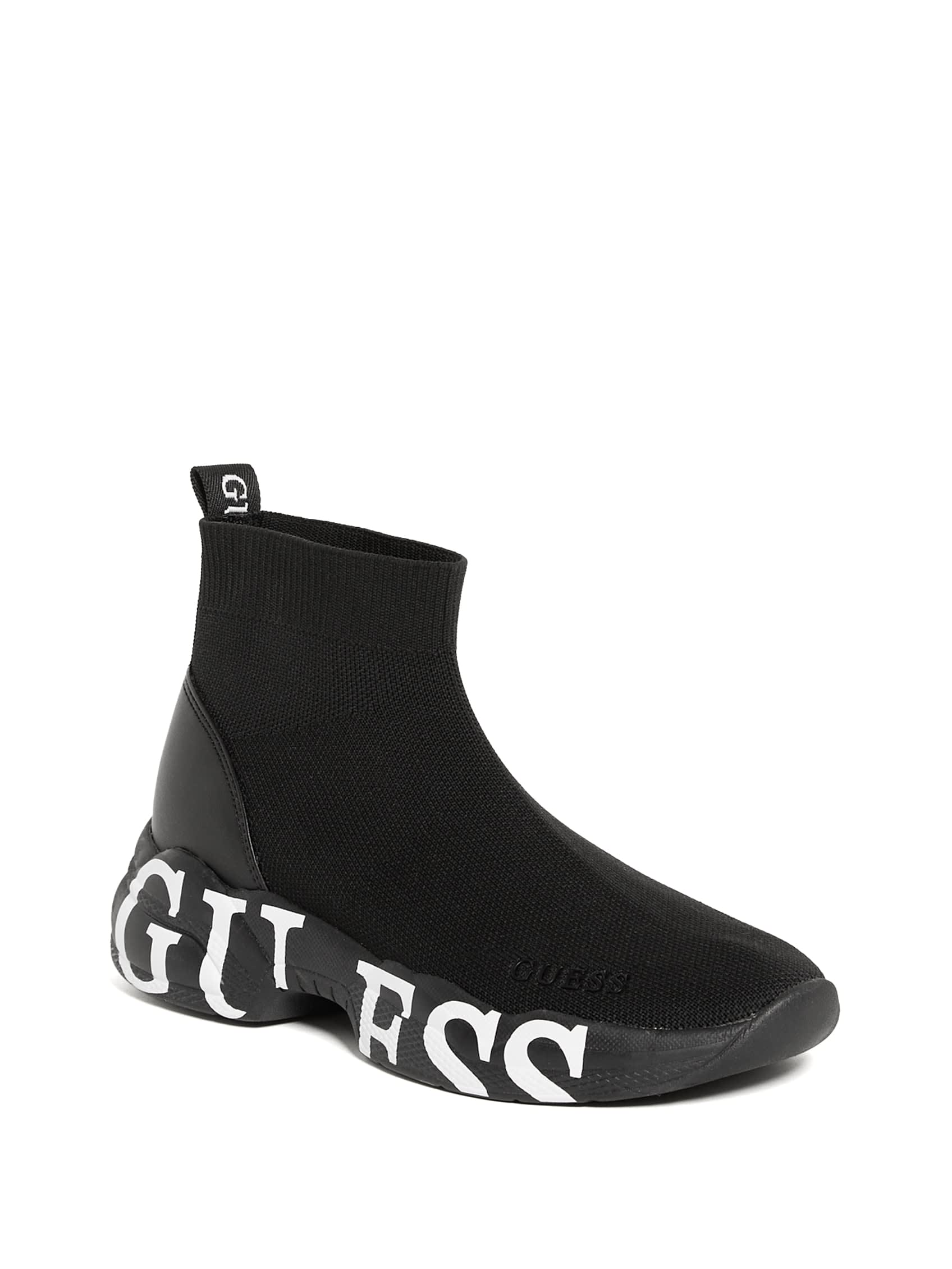 An in-demand look ready to hit the streets. These knit sneakers feature a chunky sole with logo, high-top design and a back pull with logo print.