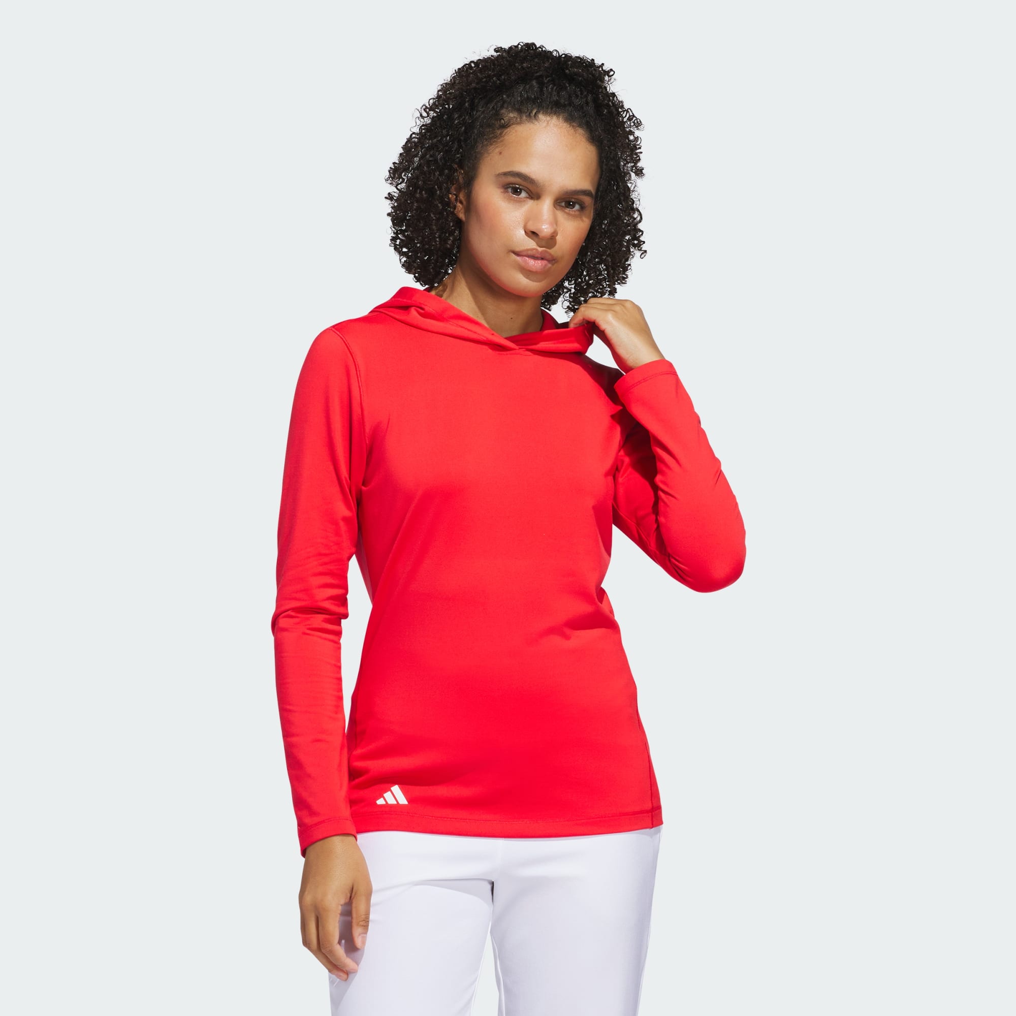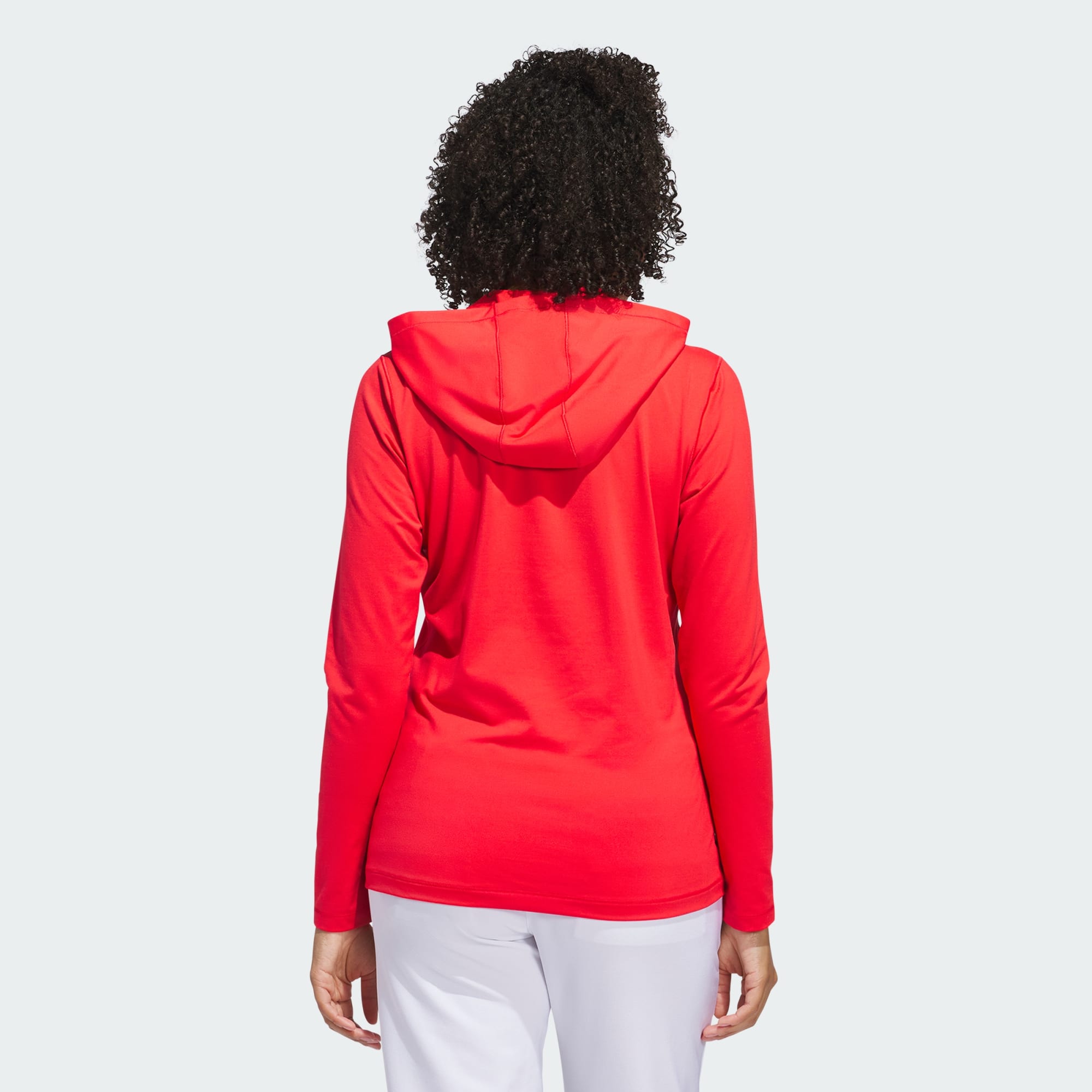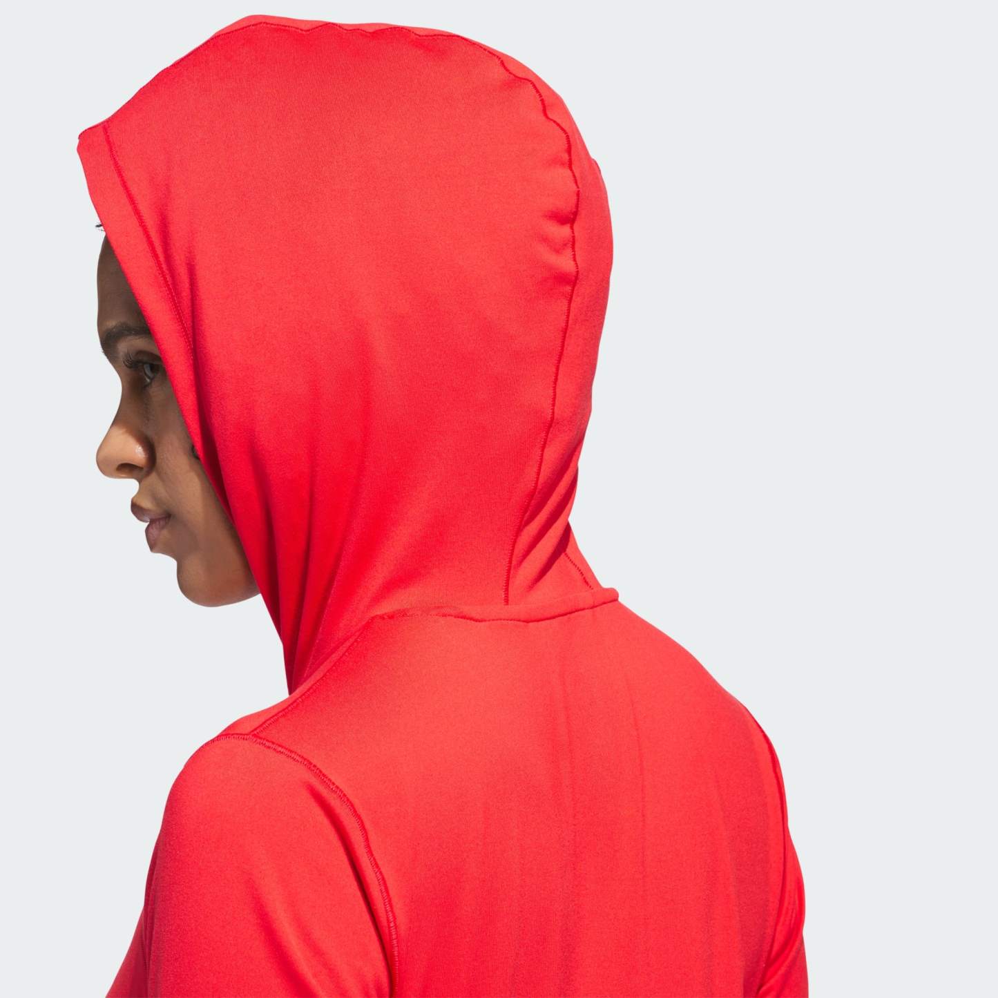 Take on those chilly mornings and breezy afternoons on the course in this adidas golf hoodie. It's made from a soft brushed fabric for a smooth and cozy feel and has plenty of stretch to let you swing comfortably. The hood comes in handy for those windy areas, so you can keep focused on your game, not the elements.