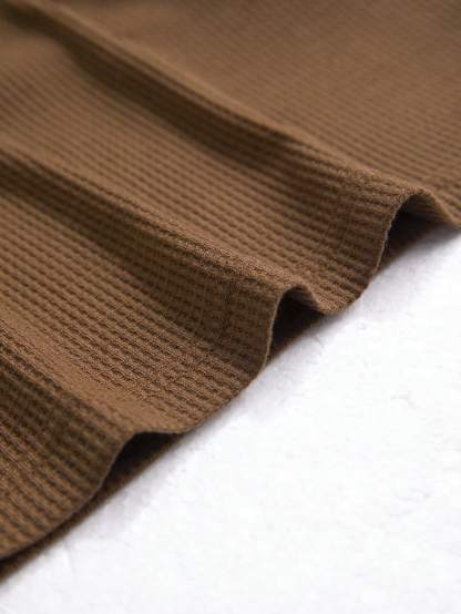 Men Half Button Waffle Knit Tee