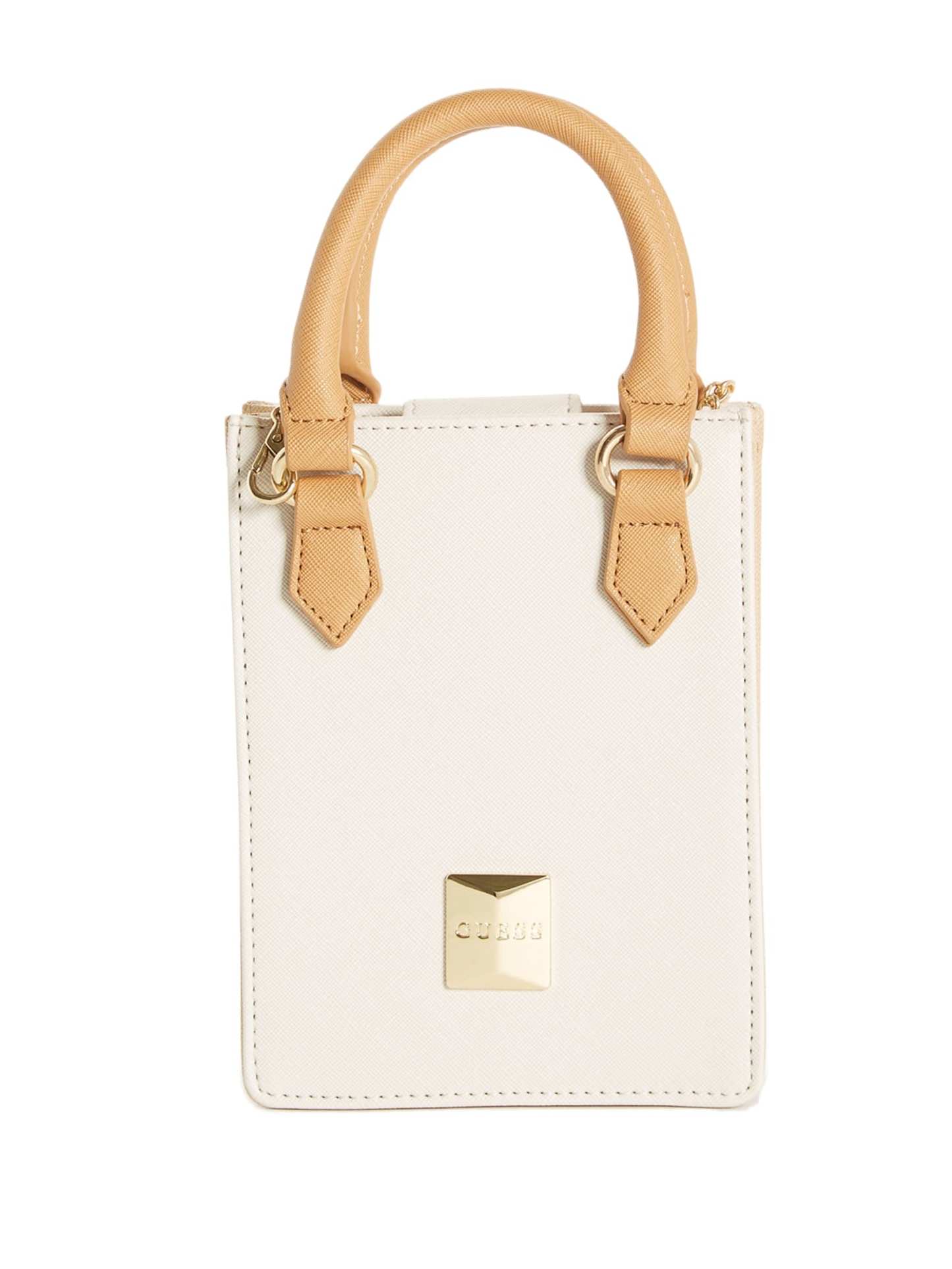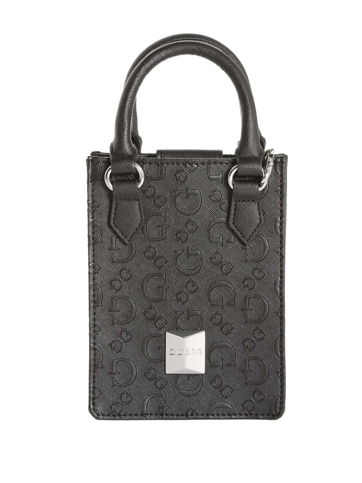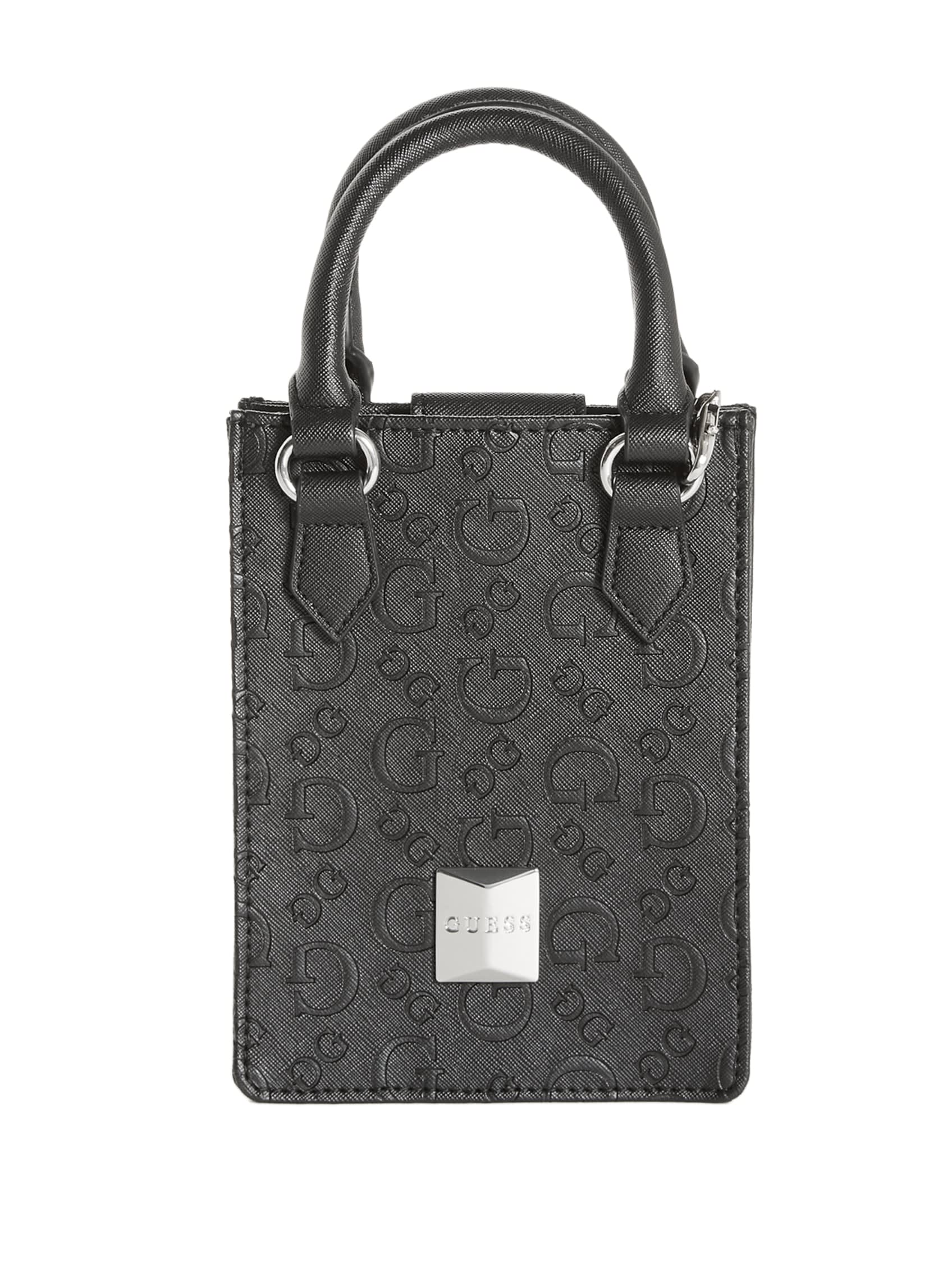 Take your look to the next level with this simple-yet-chic mini tote designed in a longline silhouette. Features stud logo emblem, rolled top handles and chain crossbody strap.