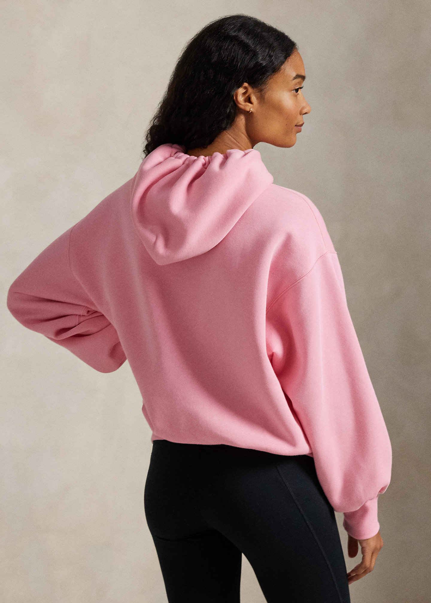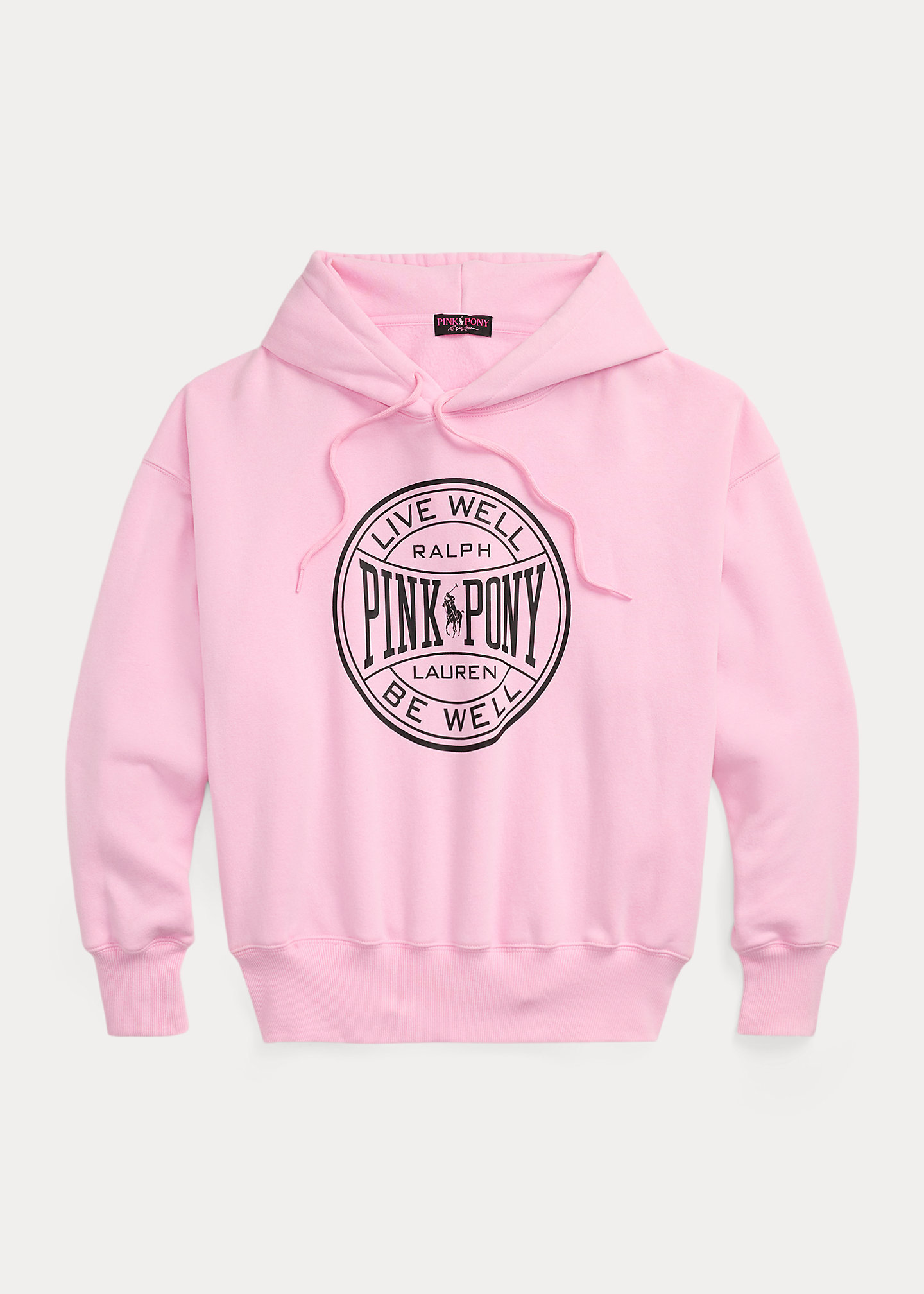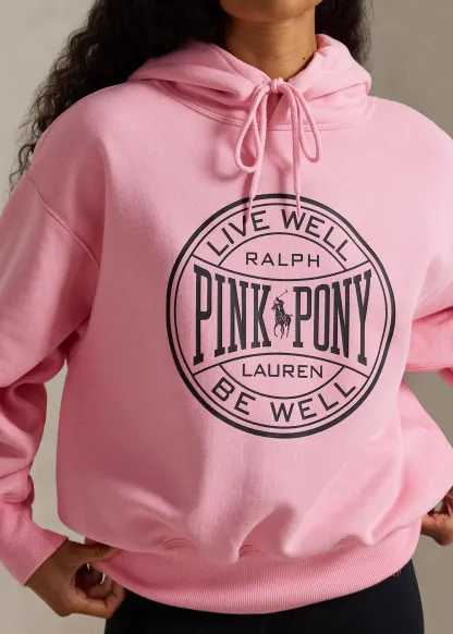- Drawstring hood. Long sleeves with ribbed cuffs. Dropped shoulders. Ribbed hem. “Pink Pony Live Well Be Well Ralph Lauren” graphic printed at the front.