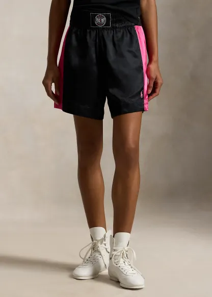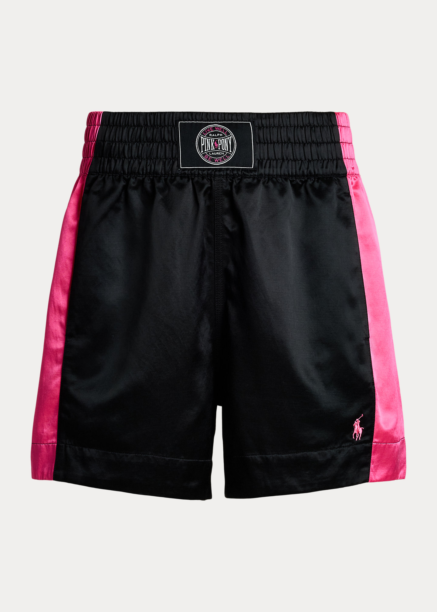 - Elastic waistband with a “Pink Pony Ralph Lauren Live Well Be Well” label with our signature Pony at the front. Side on-seam pockets. Contrasting side panels. Signature embroidered Pony at the left hem.