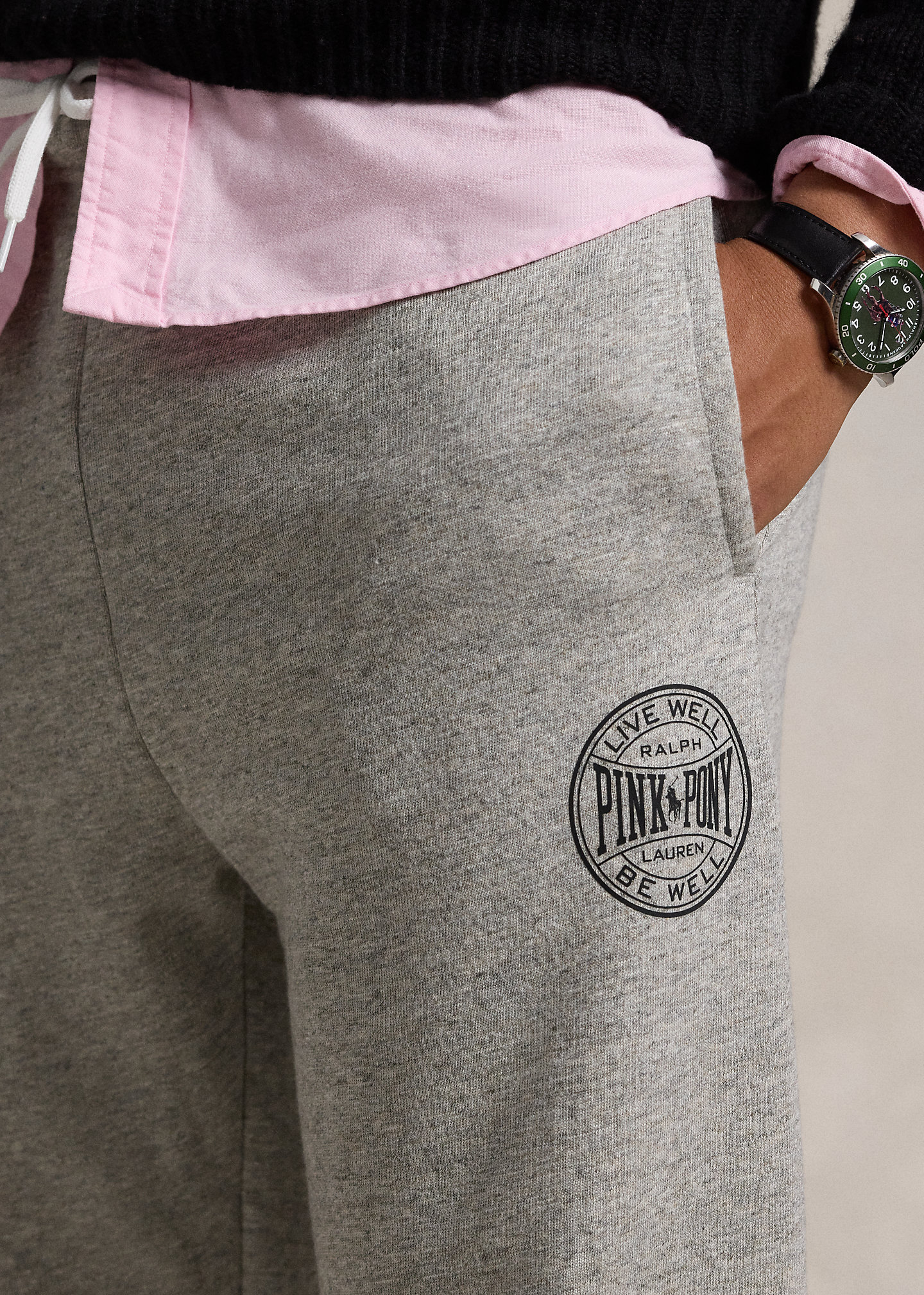 - “Pink Pony Live Well Be Well Ralph Lauren” graphic with our signature Pony printed below the left pocket.