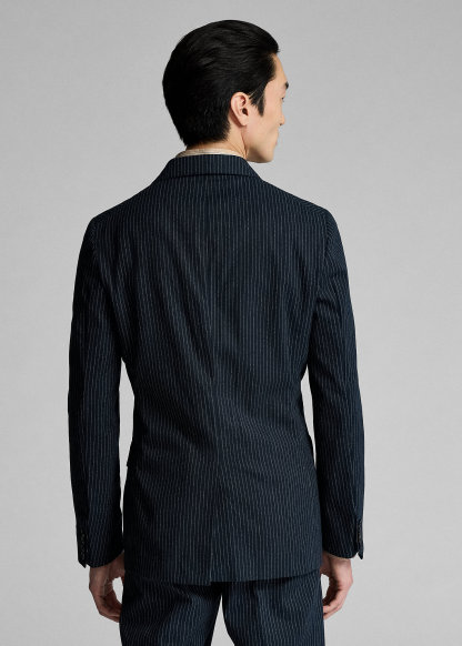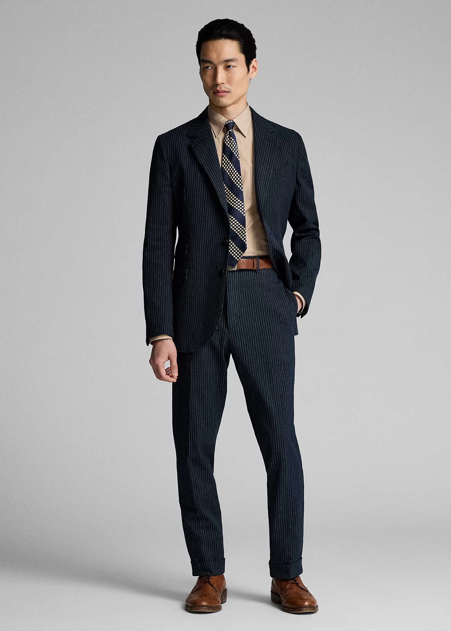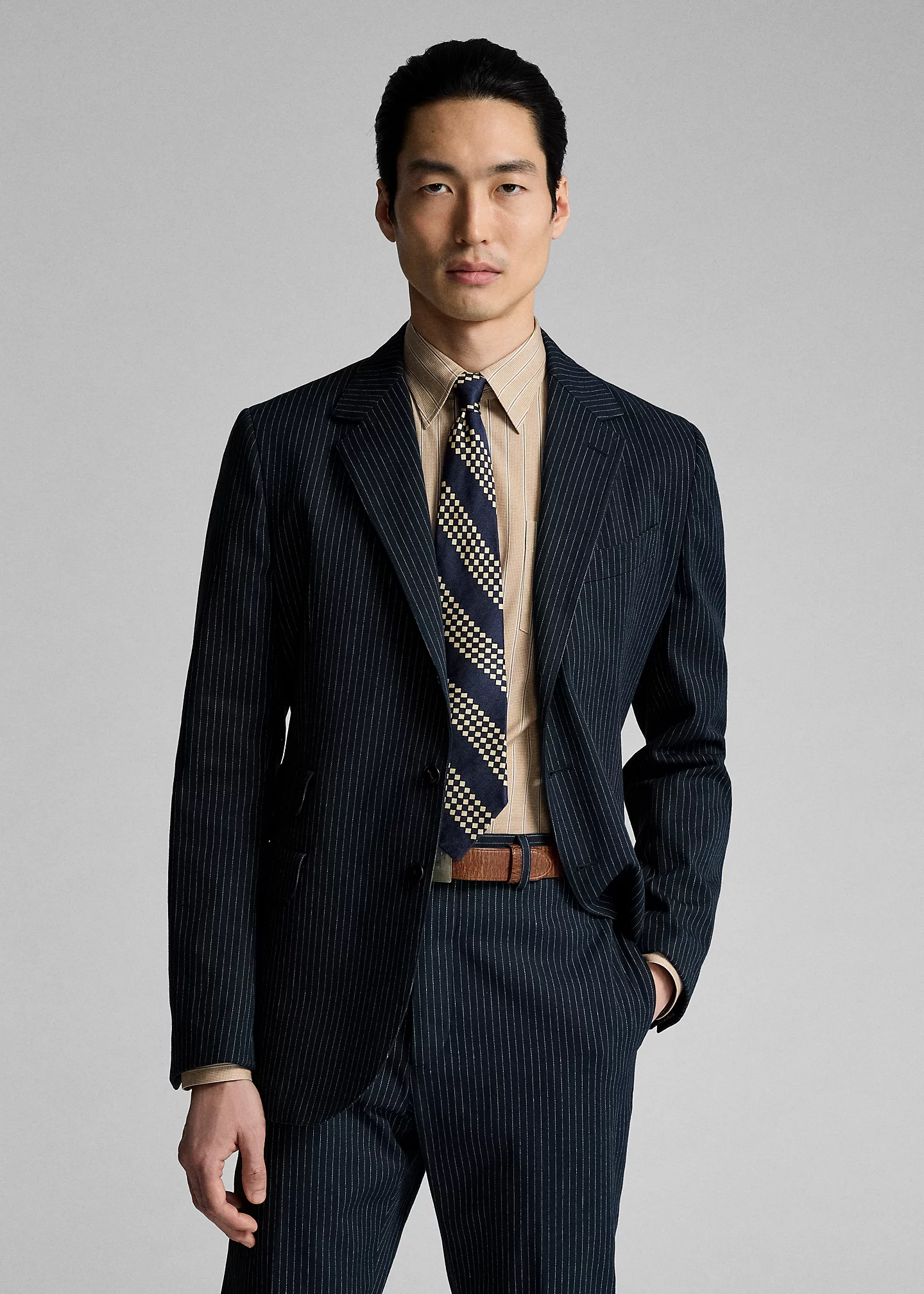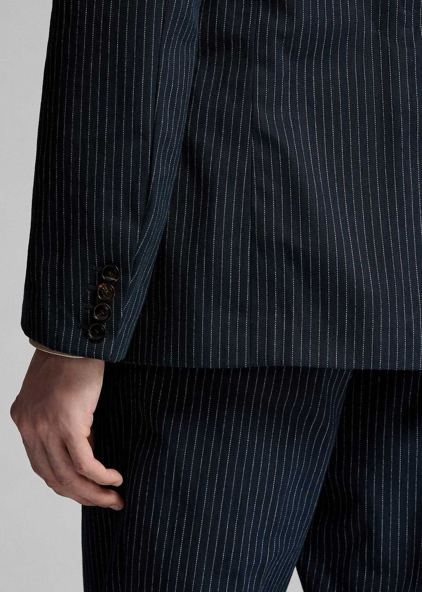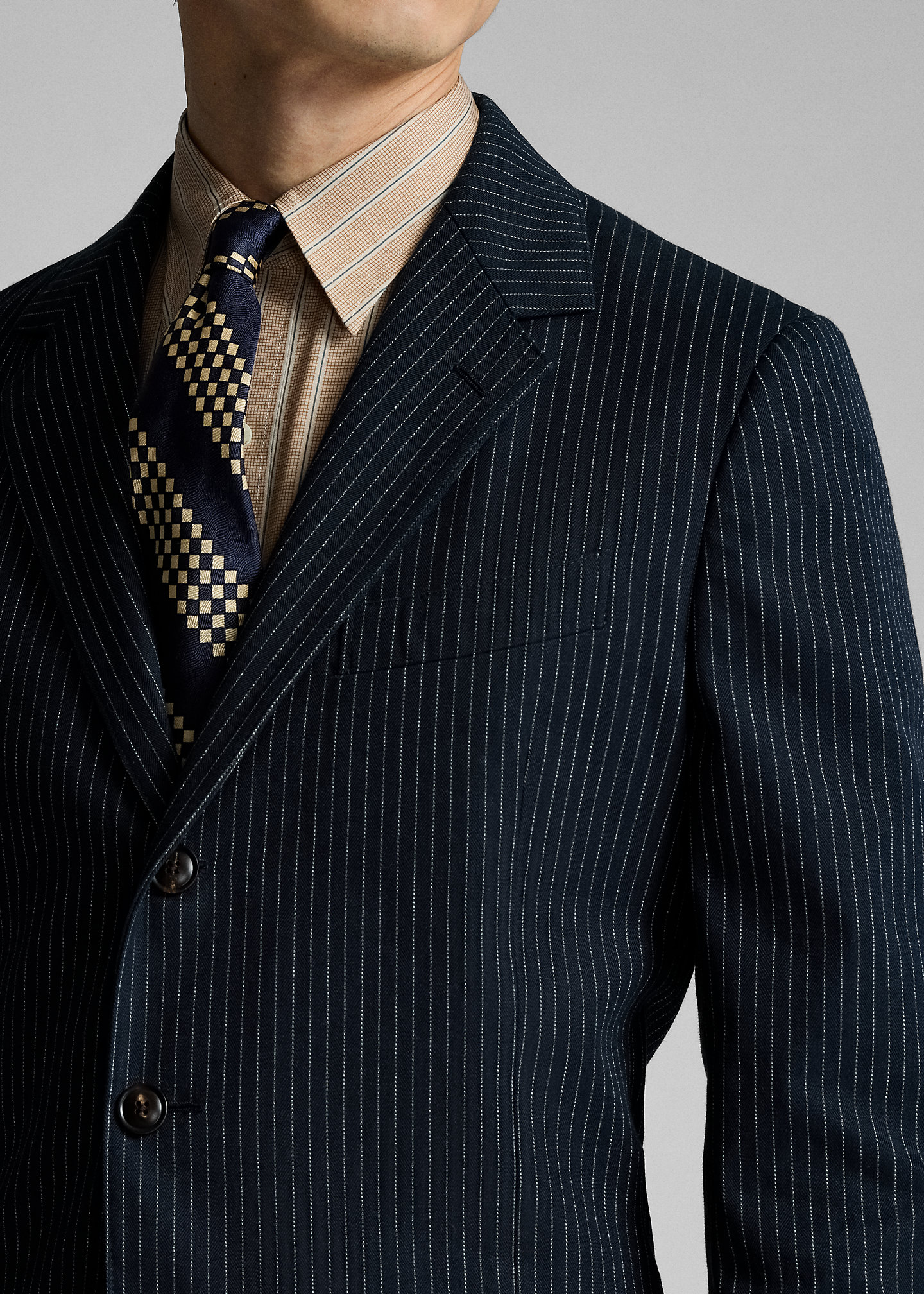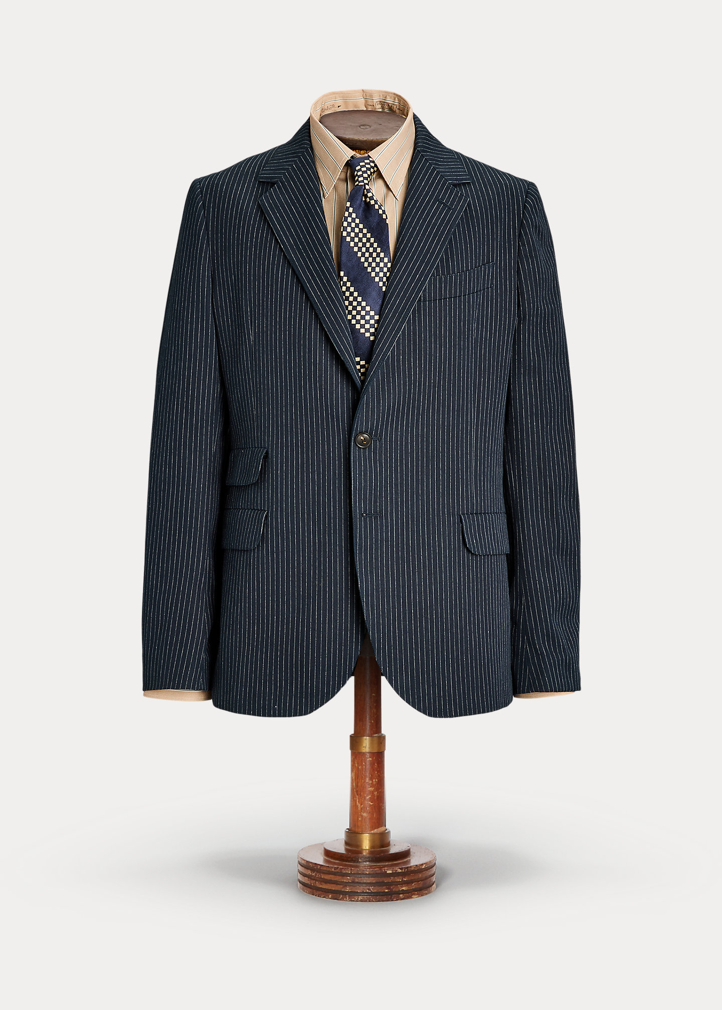 - Notch lapels. Buttonhole at the left lapel. Three-roll-two silhouette. Genuine horn buttons.