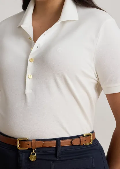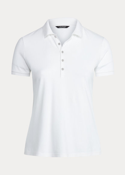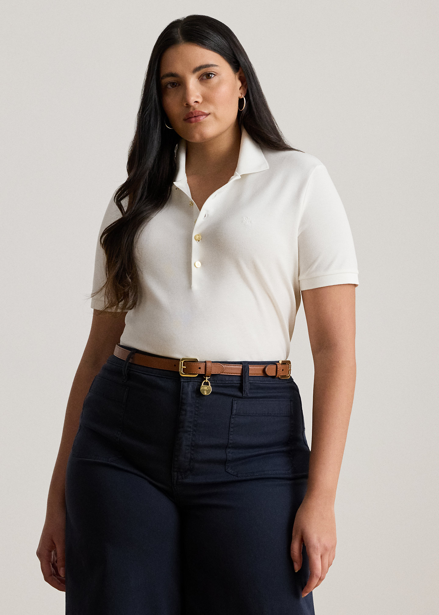 - Ribbed Polo collar. Five-button placket. "LRL"-engraved buttons.