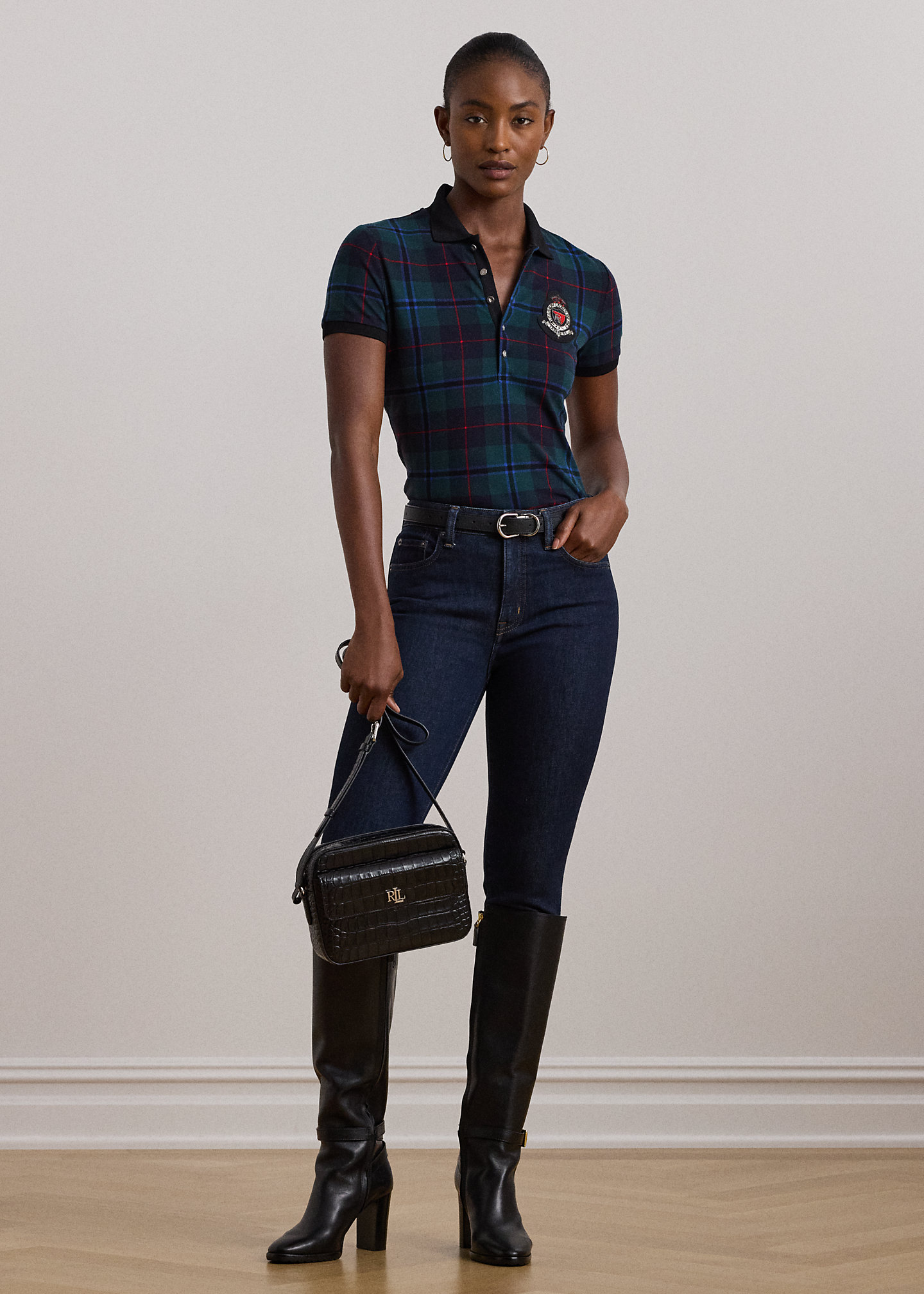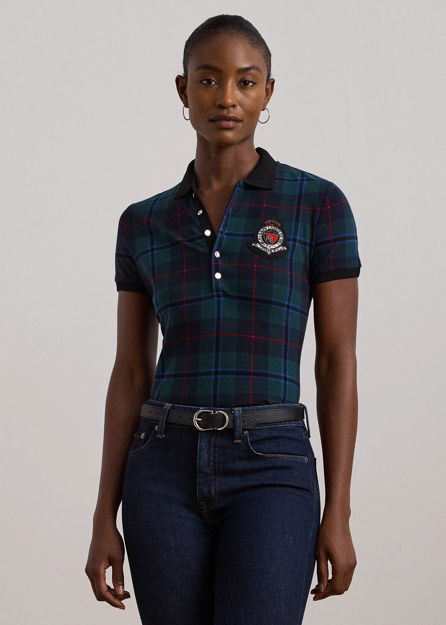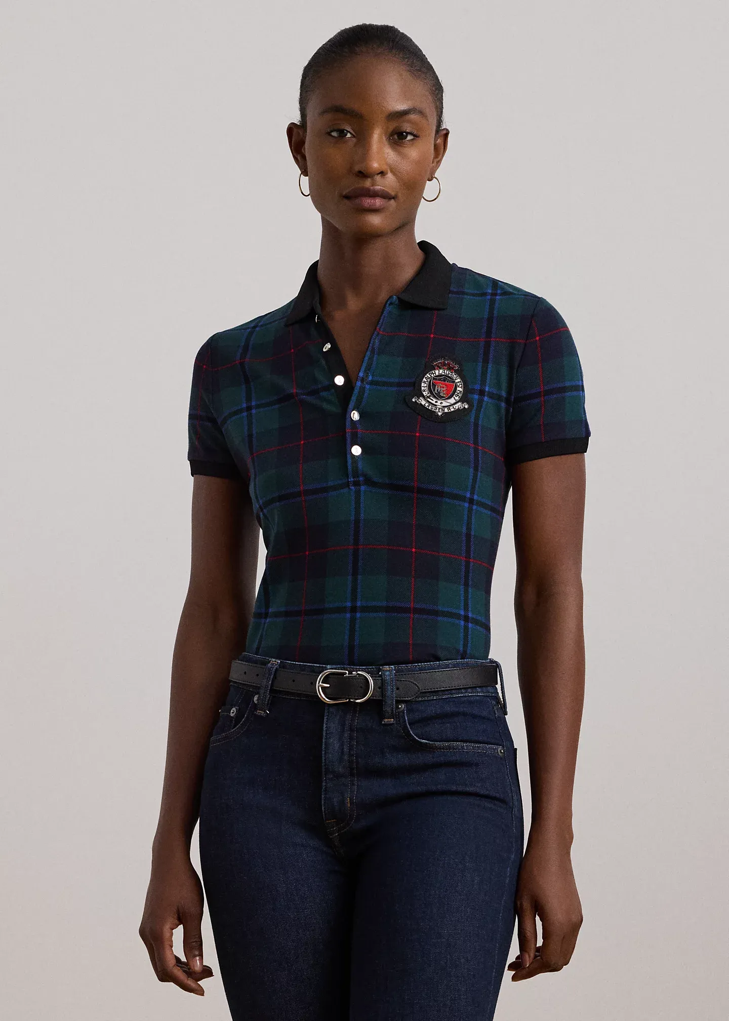 - Short sleeves with ribbed armbands. “LRL LXVII LRL Ralph Lauren est. 1967 Lauren RL” beaded crest at the left chest. Side-split hem.