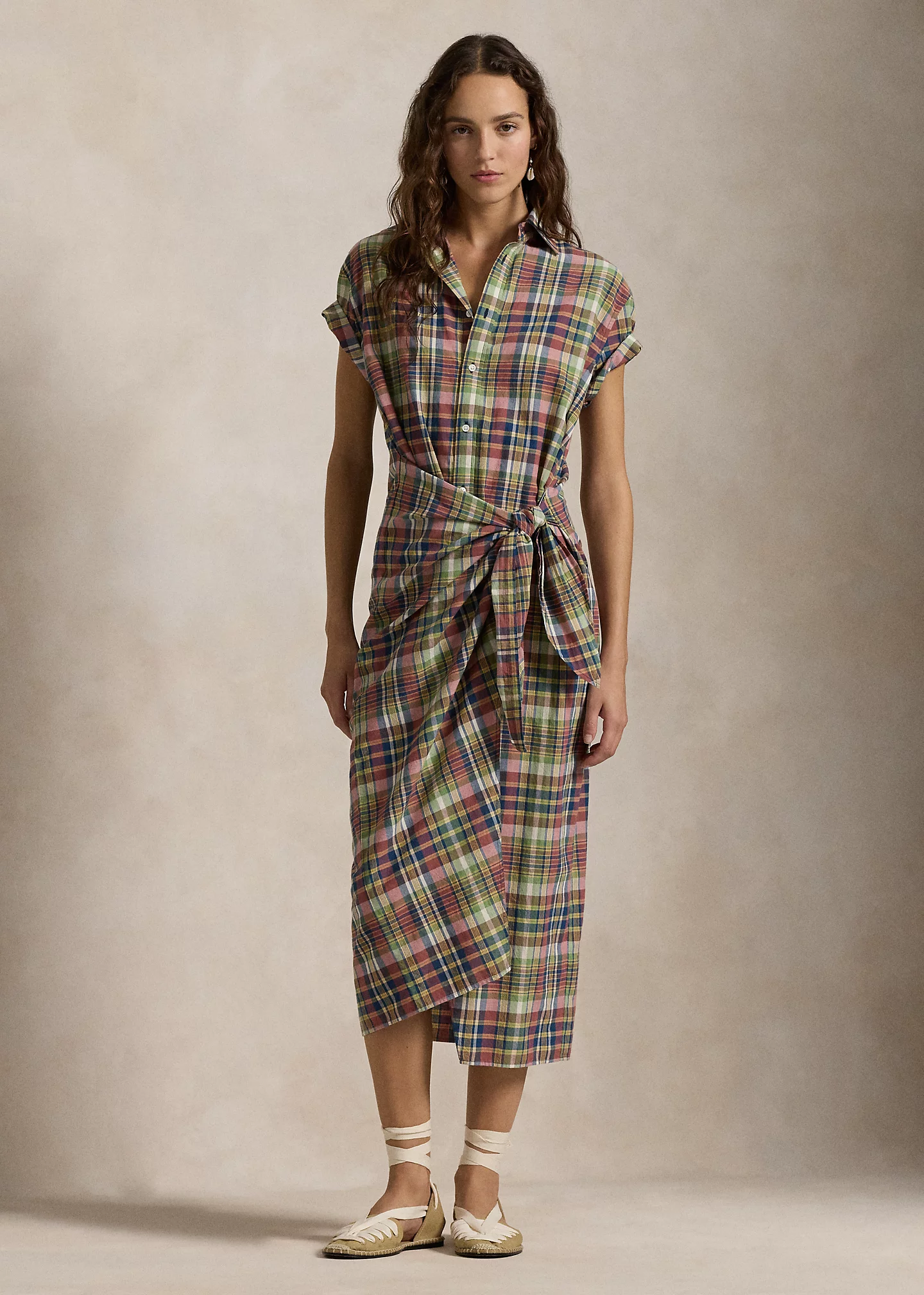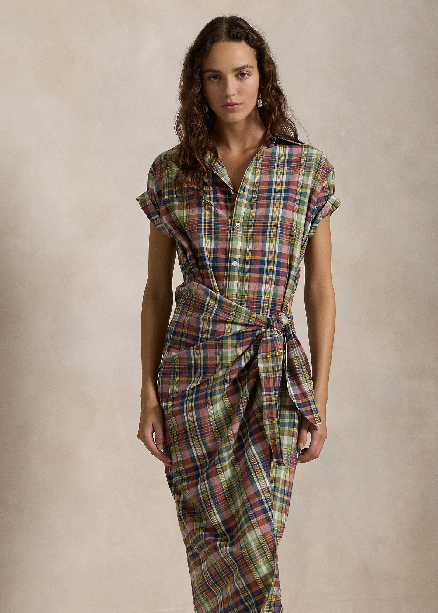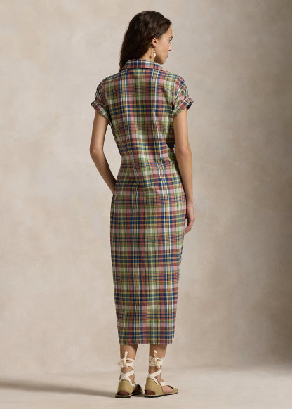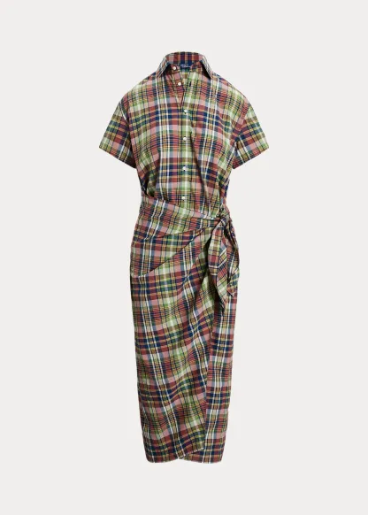 Plaid Cotton Faux-Wrap Shirtdress