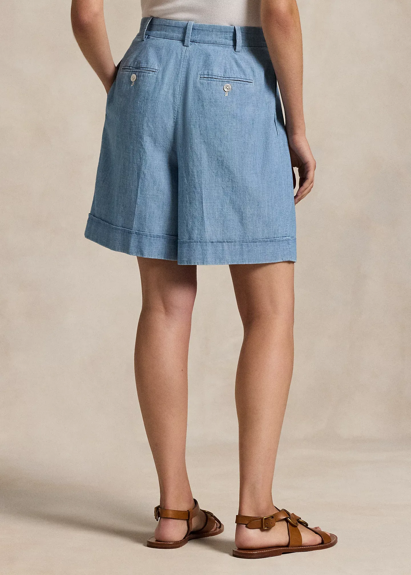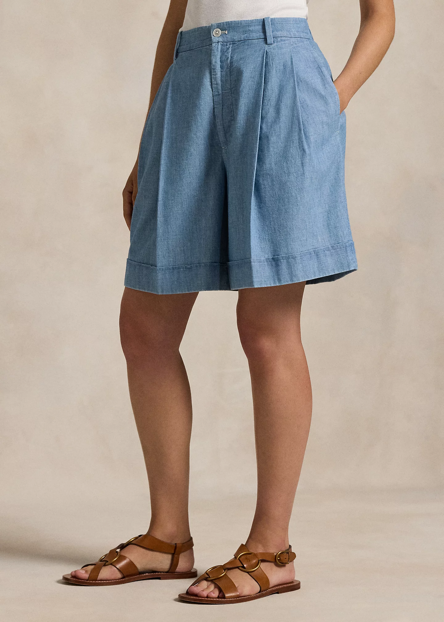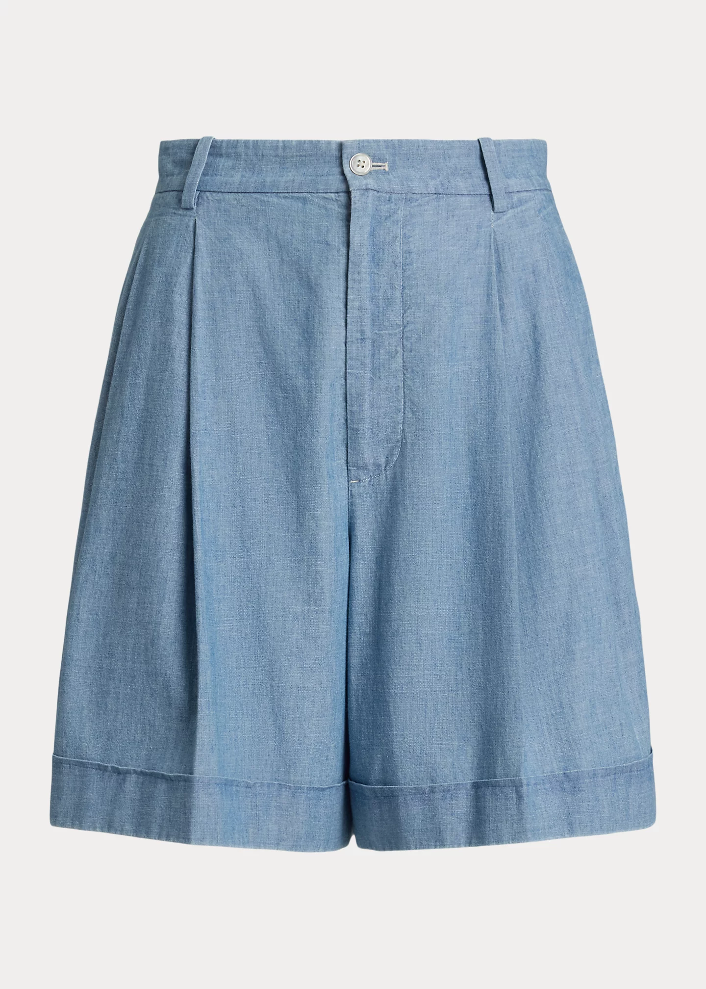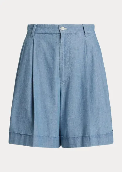 Pleated Cotton Chambray Short