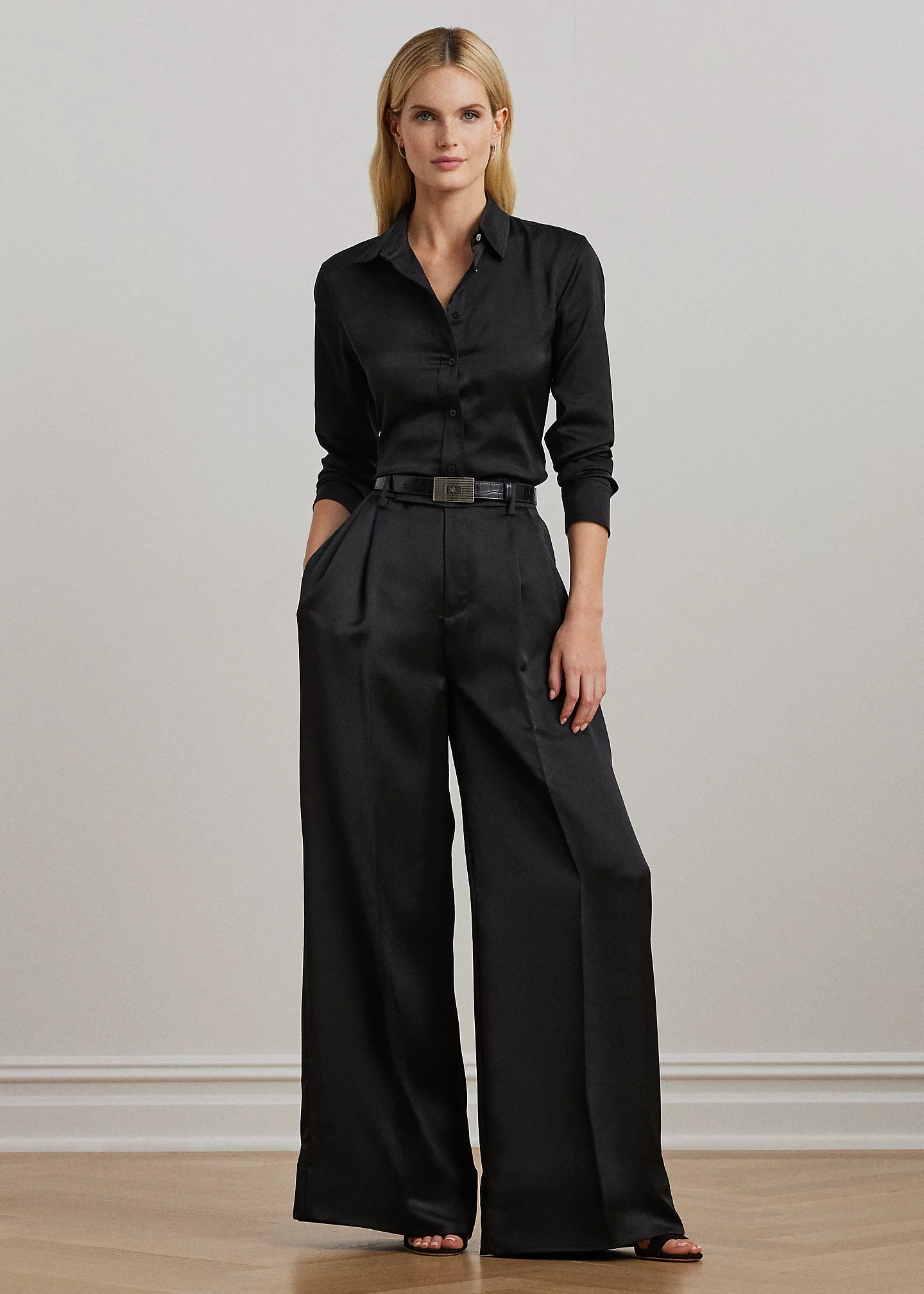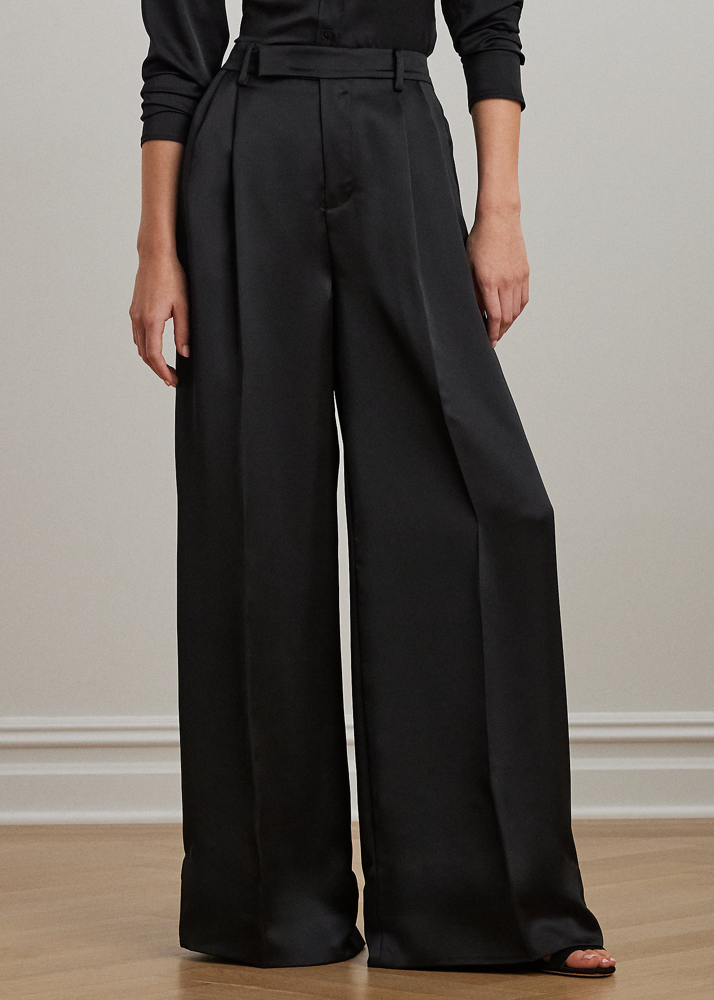 - High rise. Wide-leg silhouette. Intended to hit at the floor.