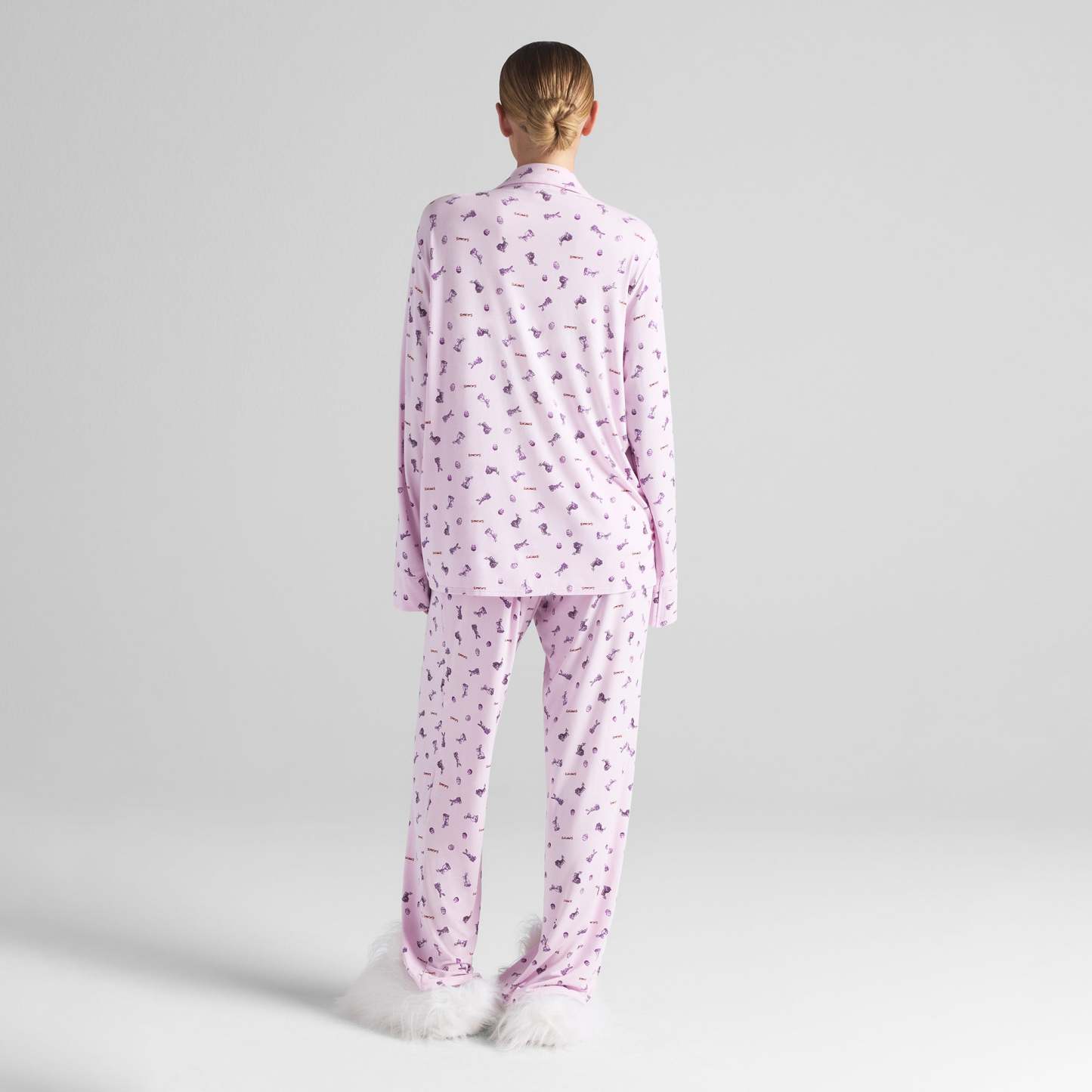 Treat your feet to these super sweet, faux fur bunny slippers. Designed with a soft fleece lining for warmth all season long, these lounge slippers have soft soles and non-slip grip for indoor use. Fits true to size and arrives packaged in a shoe bag.